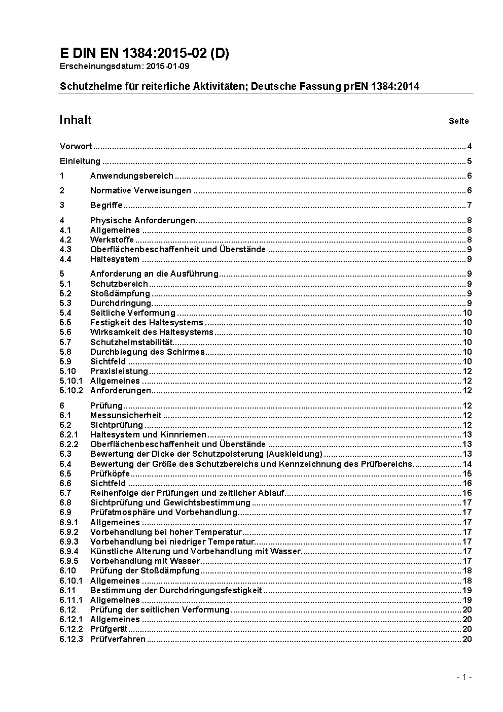 Schutzhelme für reiterliche Aktivitäten; Deutsche Fassung EN 1384:2017