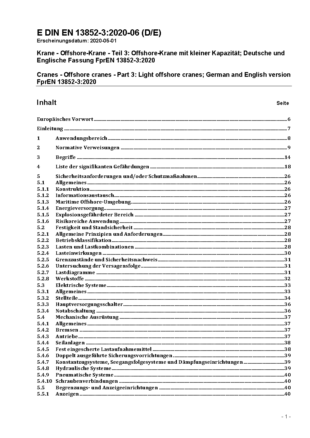 Krane - Offshore-Krane - Teil 3: Offshore-Krane mit kleiner Kapazität; Deutsche und Englische Fassung prEN 13852-3:2018