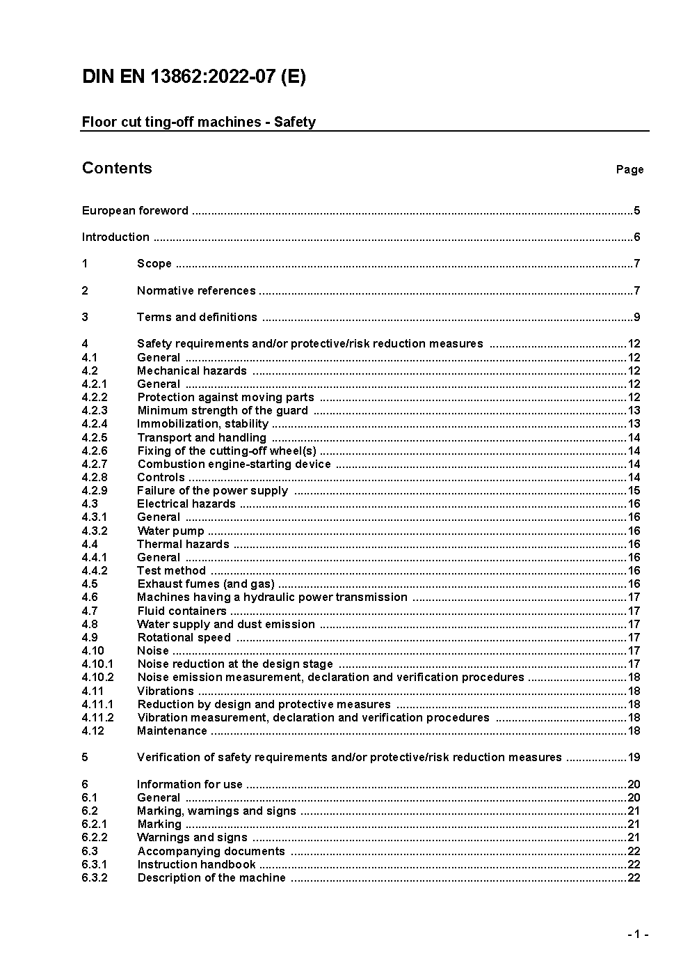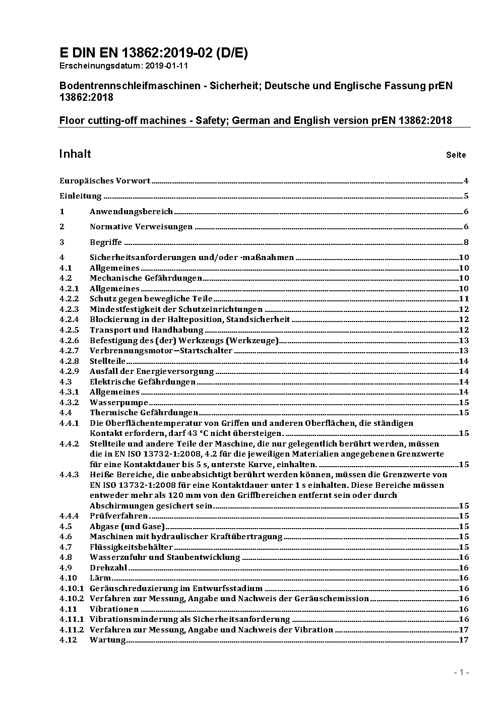 Floor cutting-off machines - Safety; German and English version prEN 13862:2018