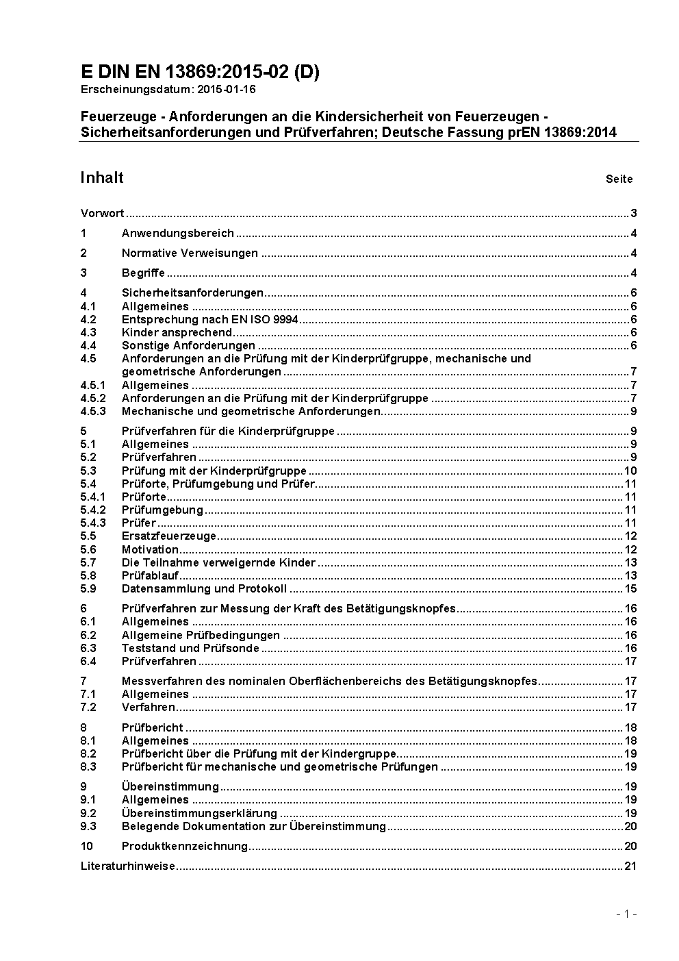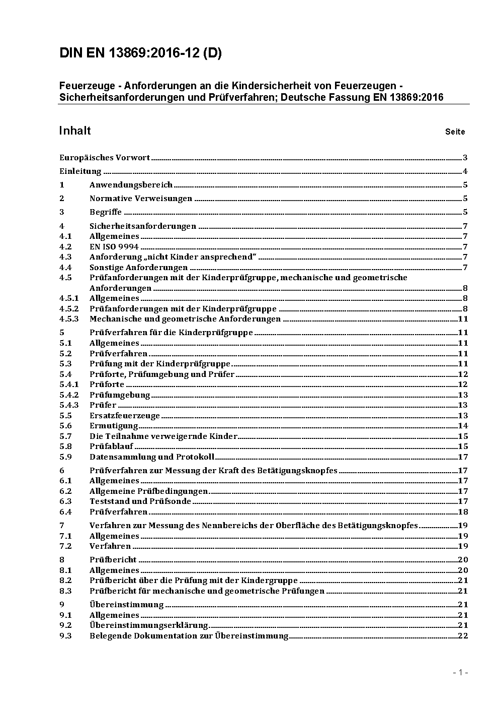 Feuerzeuge - Kindergesicherte Feuerzeuge - Sicherheitsanforderungen und Prüfverfahren; Deutsche Fassung EN 13869:2002+A1:2011