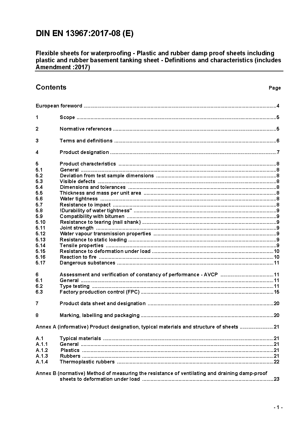 Flexible sheets for waterproofing - Plastic and rubber damp proof sheets including plastic and rubber basement tanking sheet - Definitions and characteristics; German version EN 13967:2012+A1:2017
