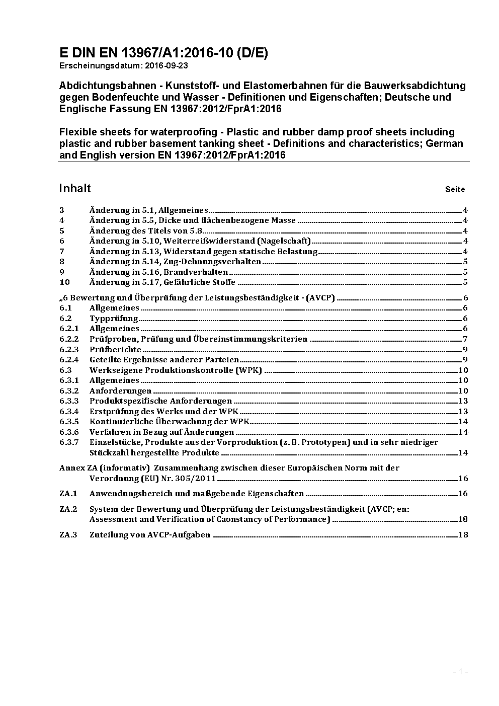 Abdichtungsbahnen - Kunststoff- und Elastomerbahnen für die Bauwerksabdichtung gegen Bodenfeuchte und Wasser - Definitionen und Eigenschaften; Deutsche Fassung EN 13967:2012+A1:2017