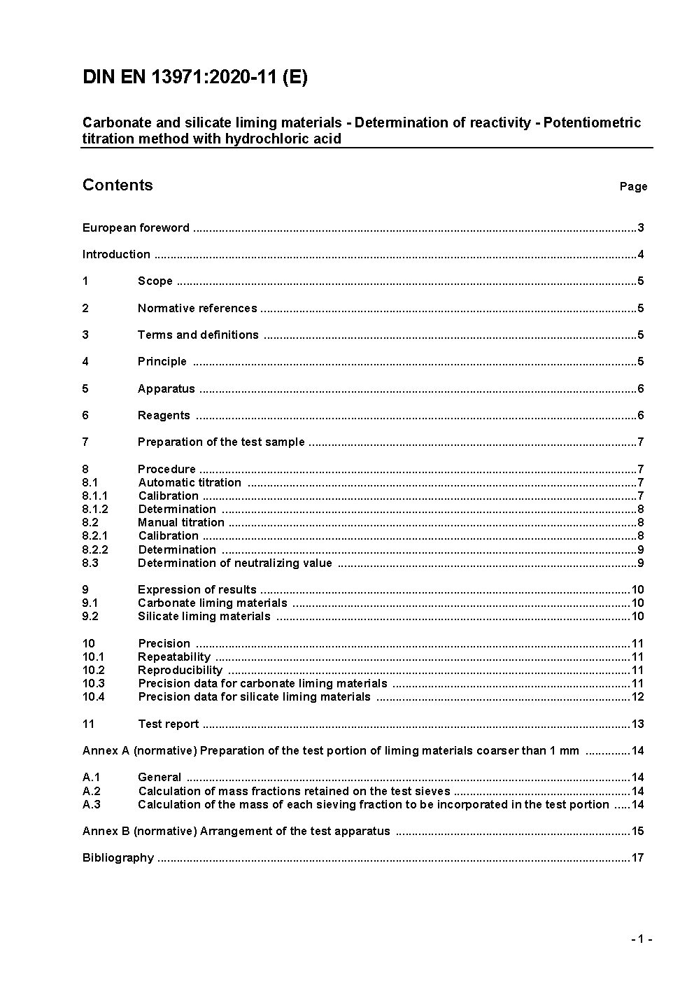 Carbonate liming materials - Determination of the reactivity - Potentiometric titration method with hydrochloric acid; German version EN 13971:2002