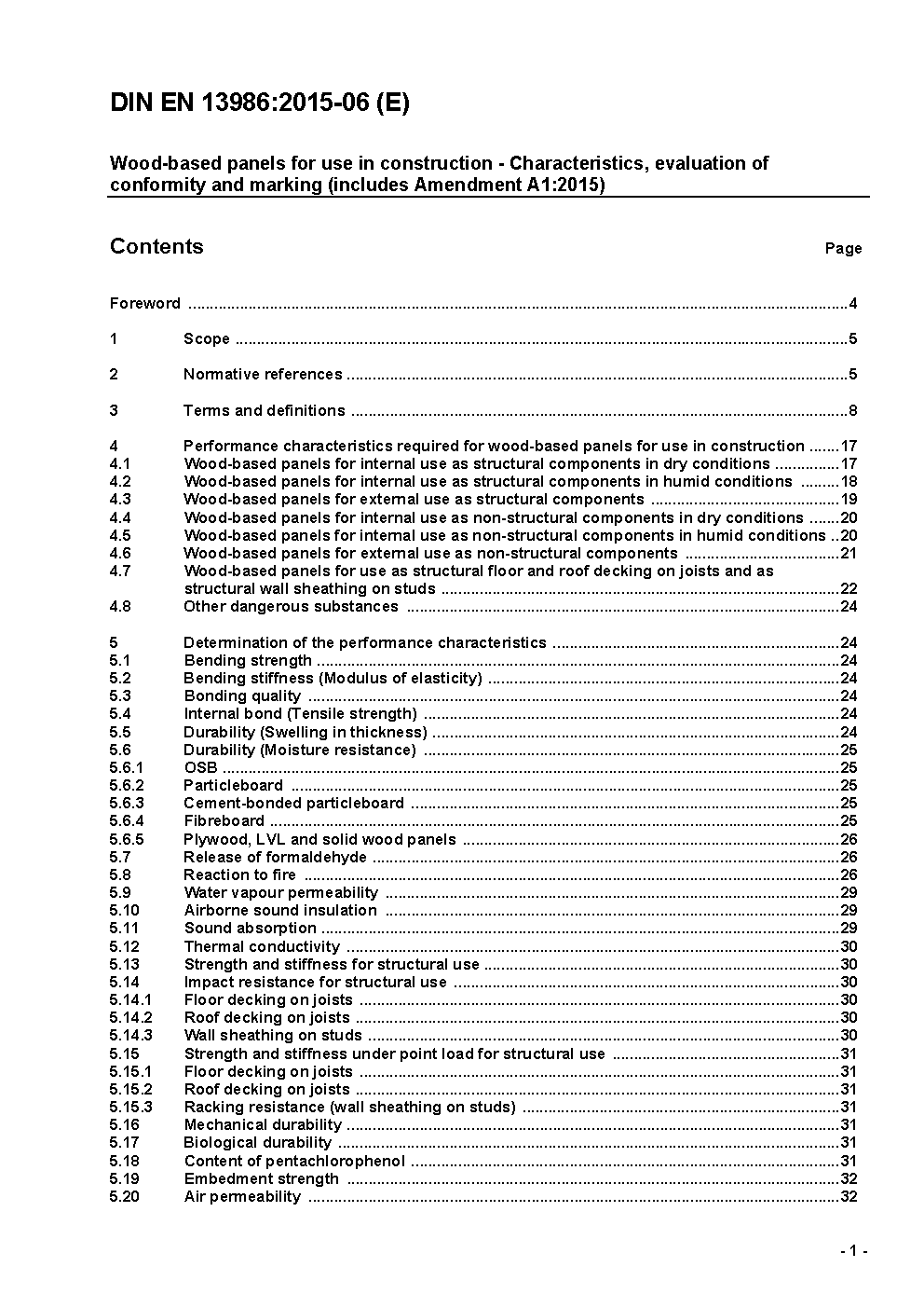 Wood-based panels for use in construction - Characteristics, evaluation of conformity and marking; German version EN 13986:2004