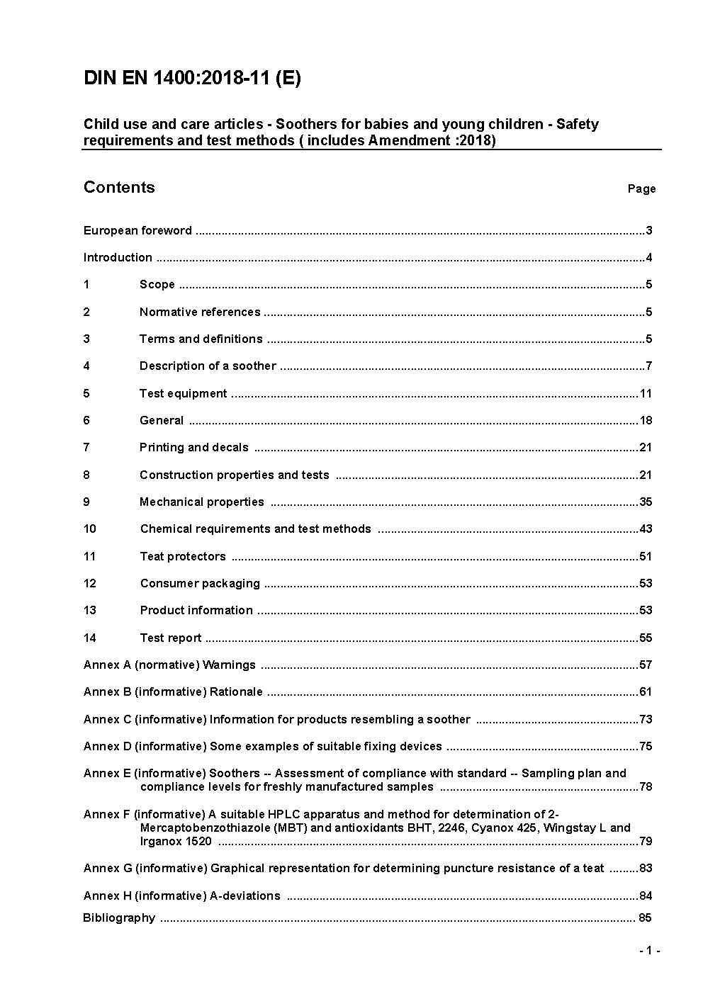 Child use and care articles - Soothers for babies and young children - Safety requirements and test methods; German and English version EN 1400:2013+A1:2014/prA2:2016