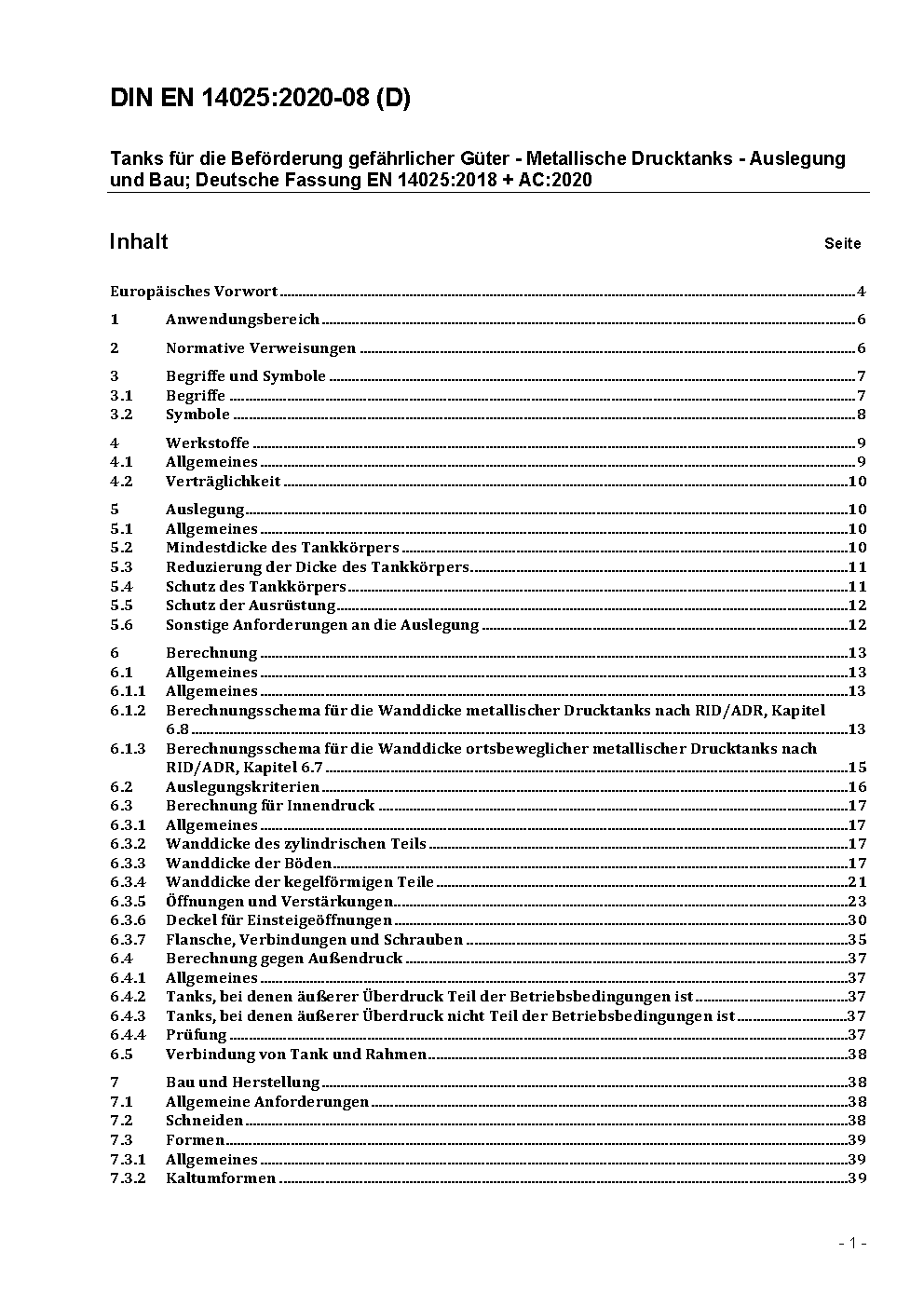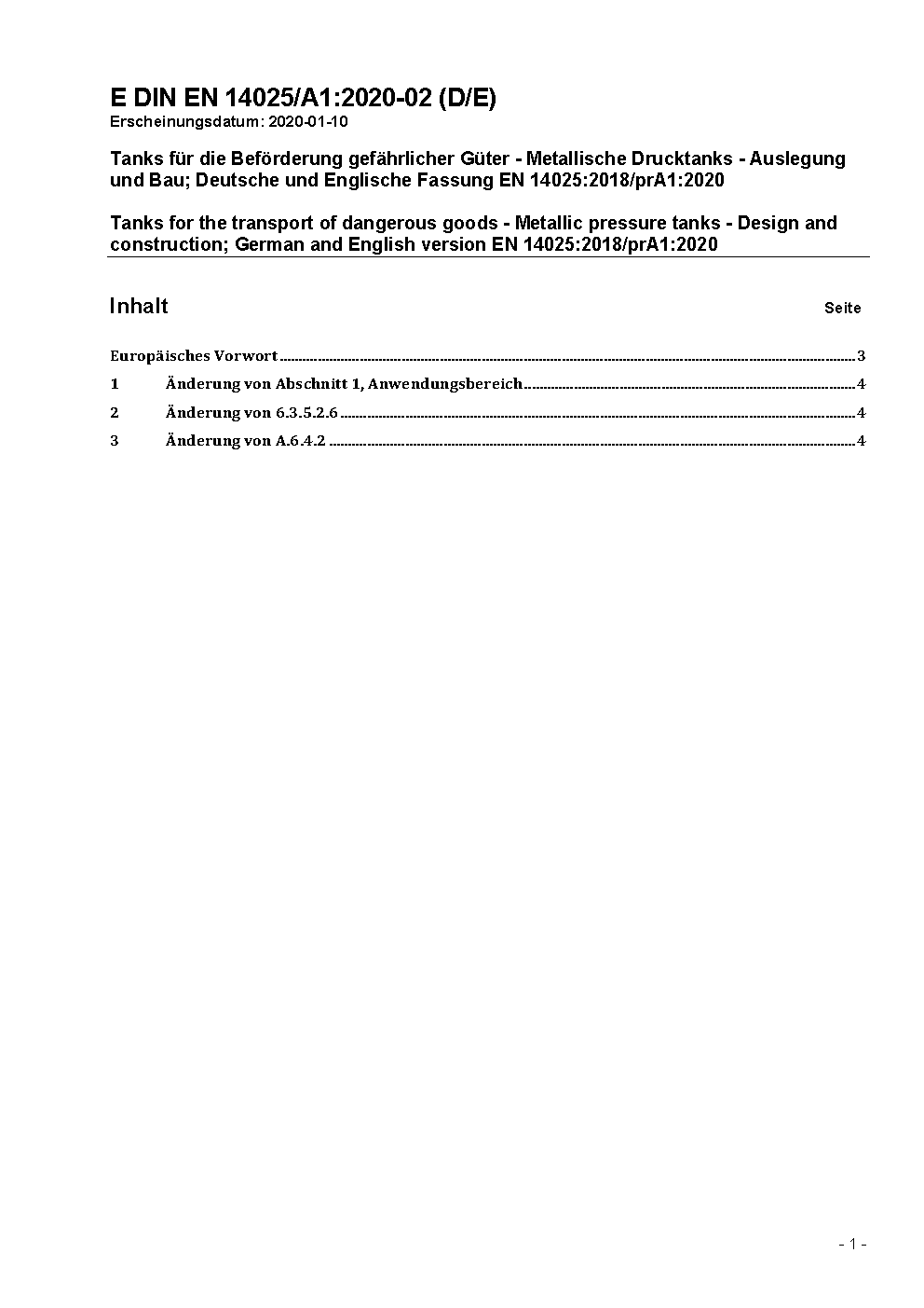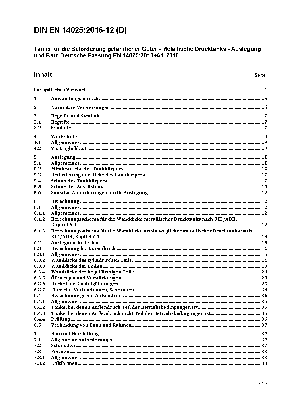 Tanks für die Beförderung gefährlicher Güter - Metallische Drucktanks - Auslegung und Bau; Deutsche Fassung EN 14025:2013+A1:2016