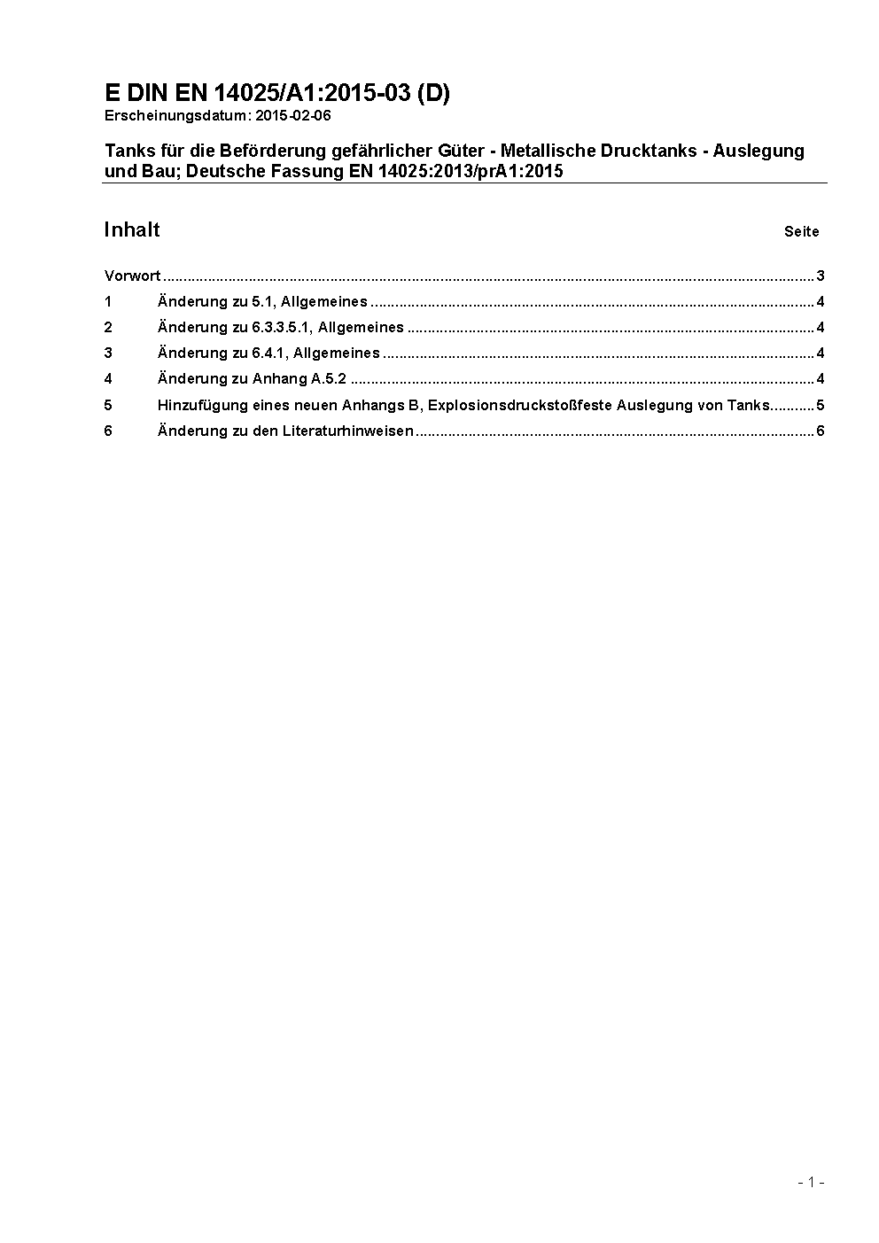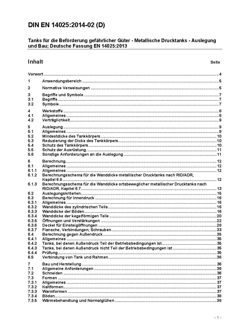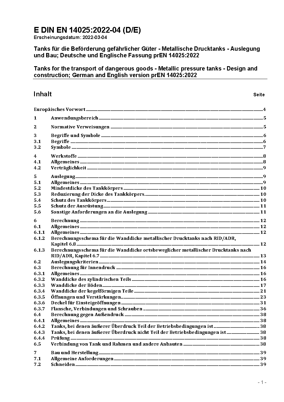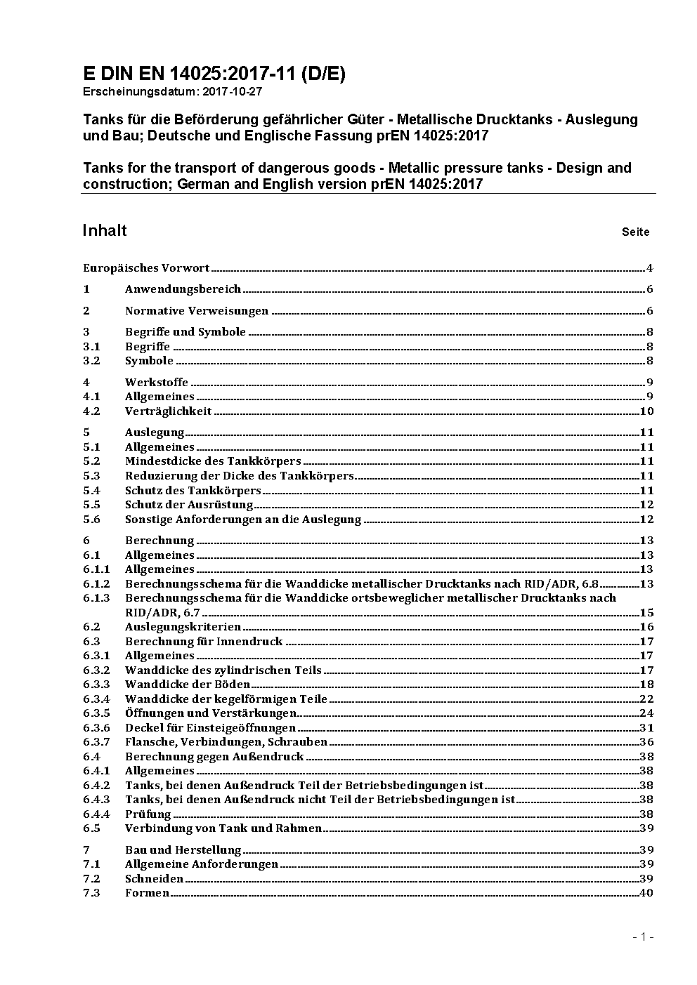 Tanks for the transport of dangerous goods - Metallic pressure tanks - Design and construction; German version EN 14025:2013+A1:2016