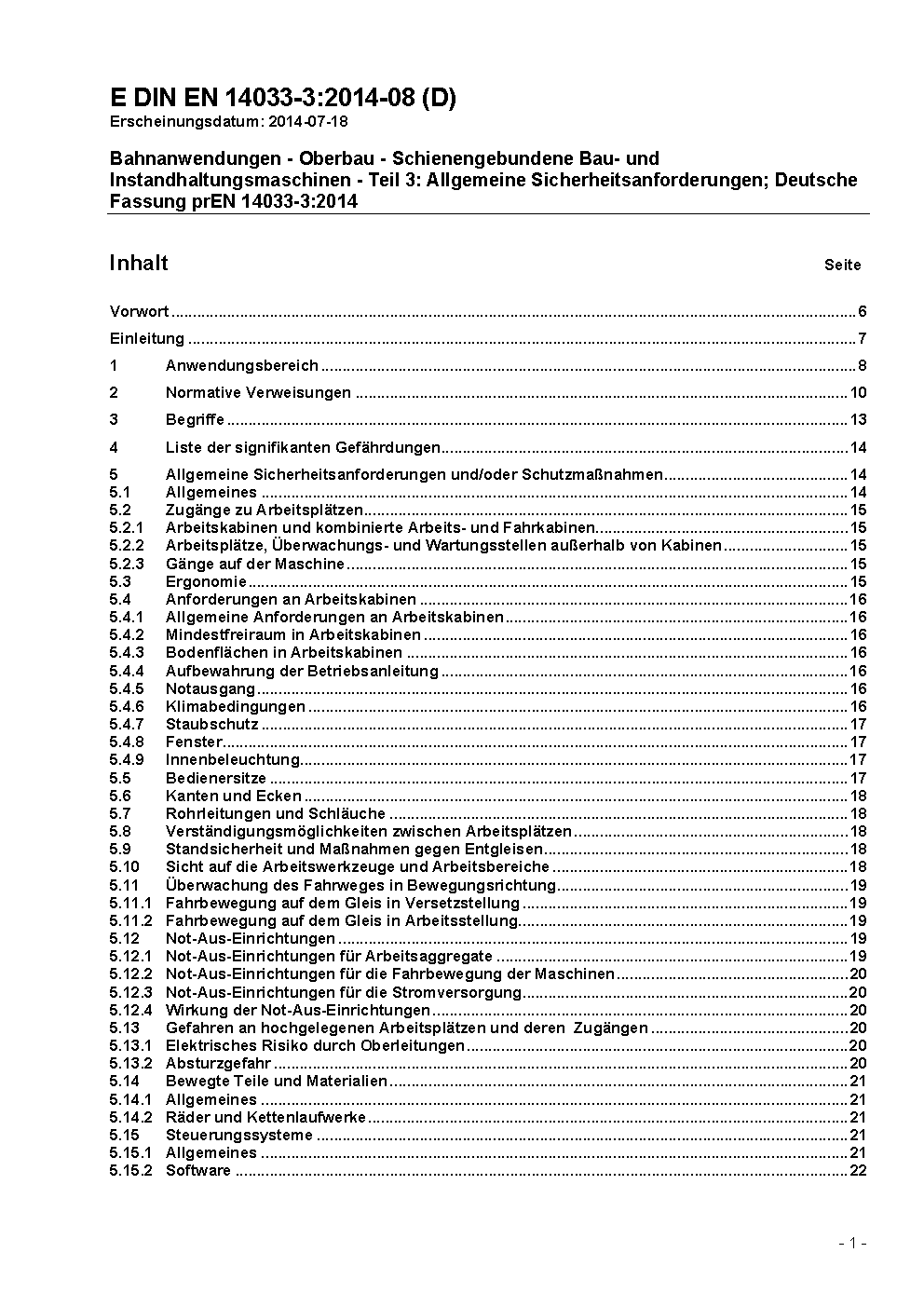 Bahnanwendungen - Oberbau - Schienengebundene Bau- und Instandhaltungsmaschinen - Teil 3: Allgemeine Sicherheitsanforderungen; Deutsche Fassung EN 14033-3:2017