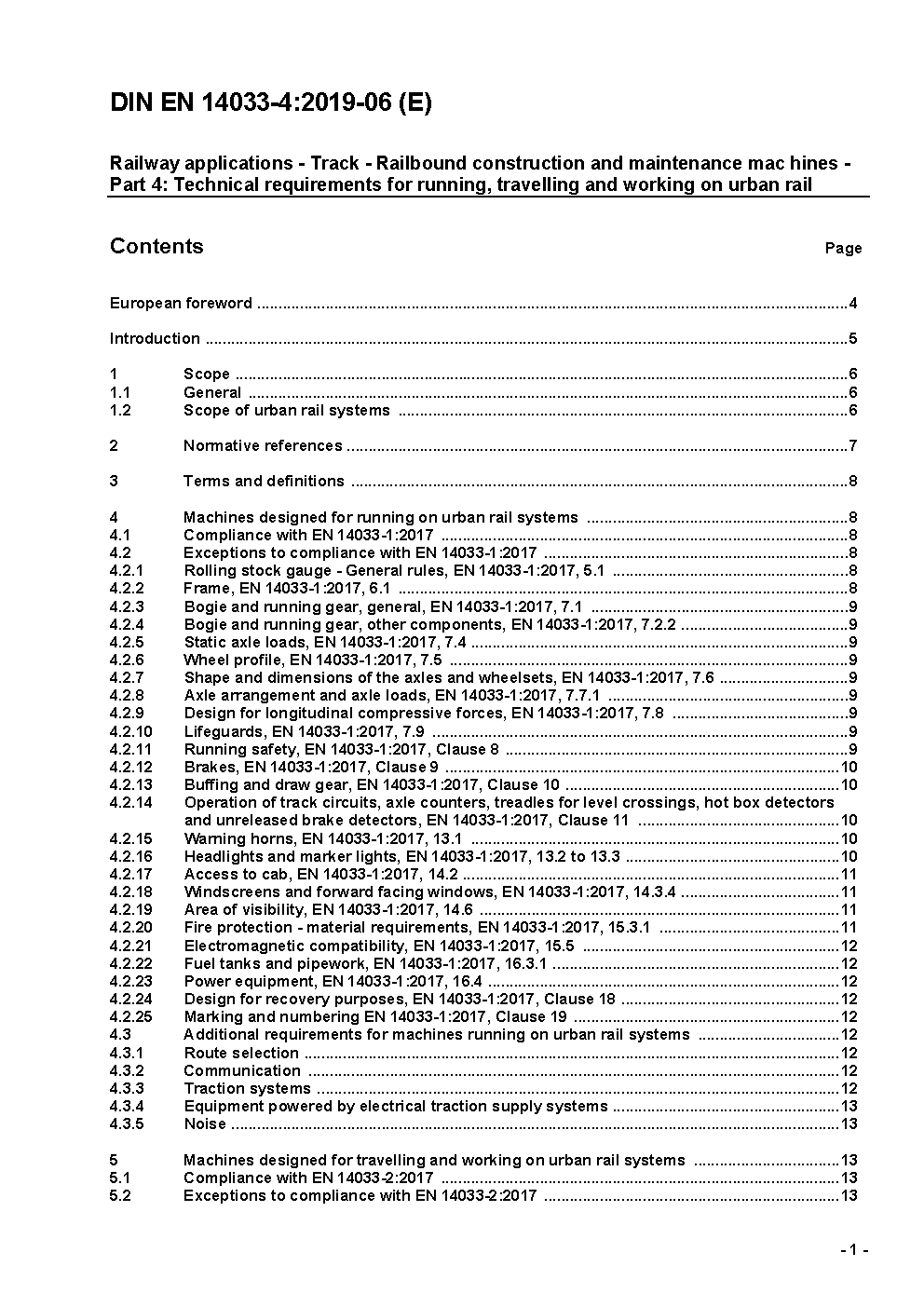 Railway applications - Track - Railbound construction and maintenance machines - Part 4: Technical requirements for running, travelling and working on urban rail; German and English version prEN 14033-4:2017