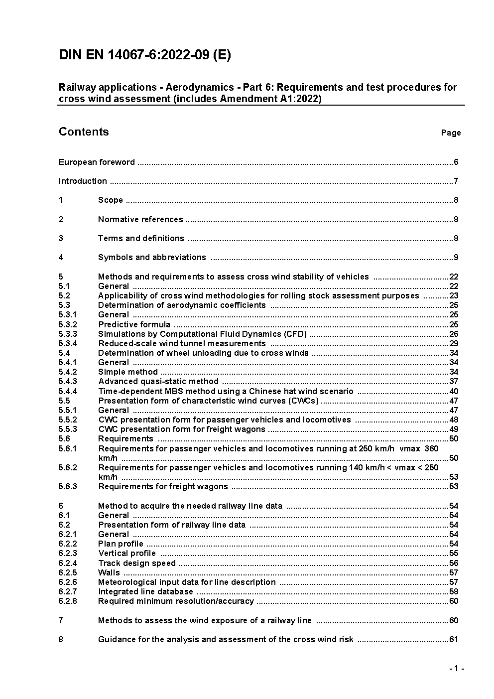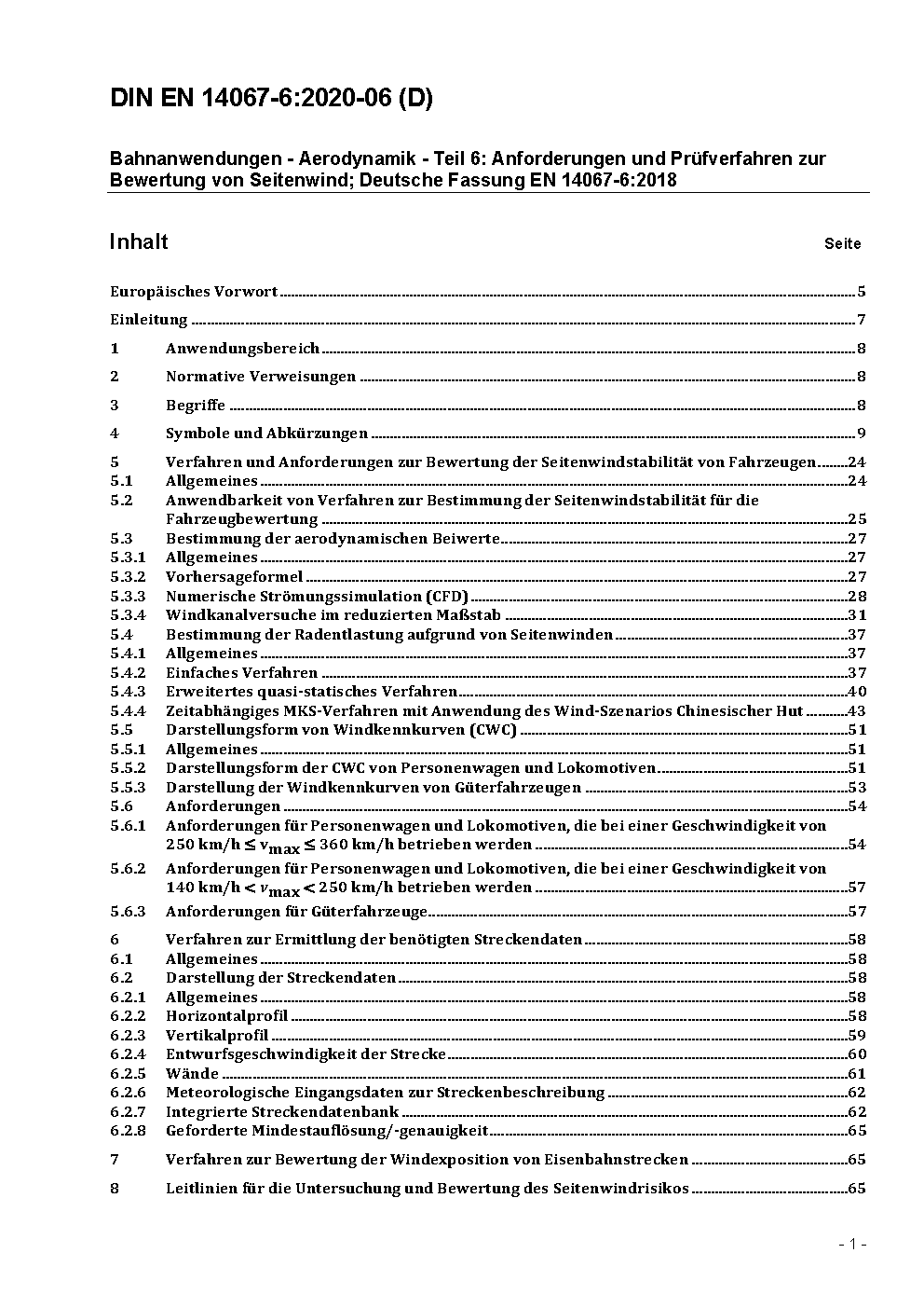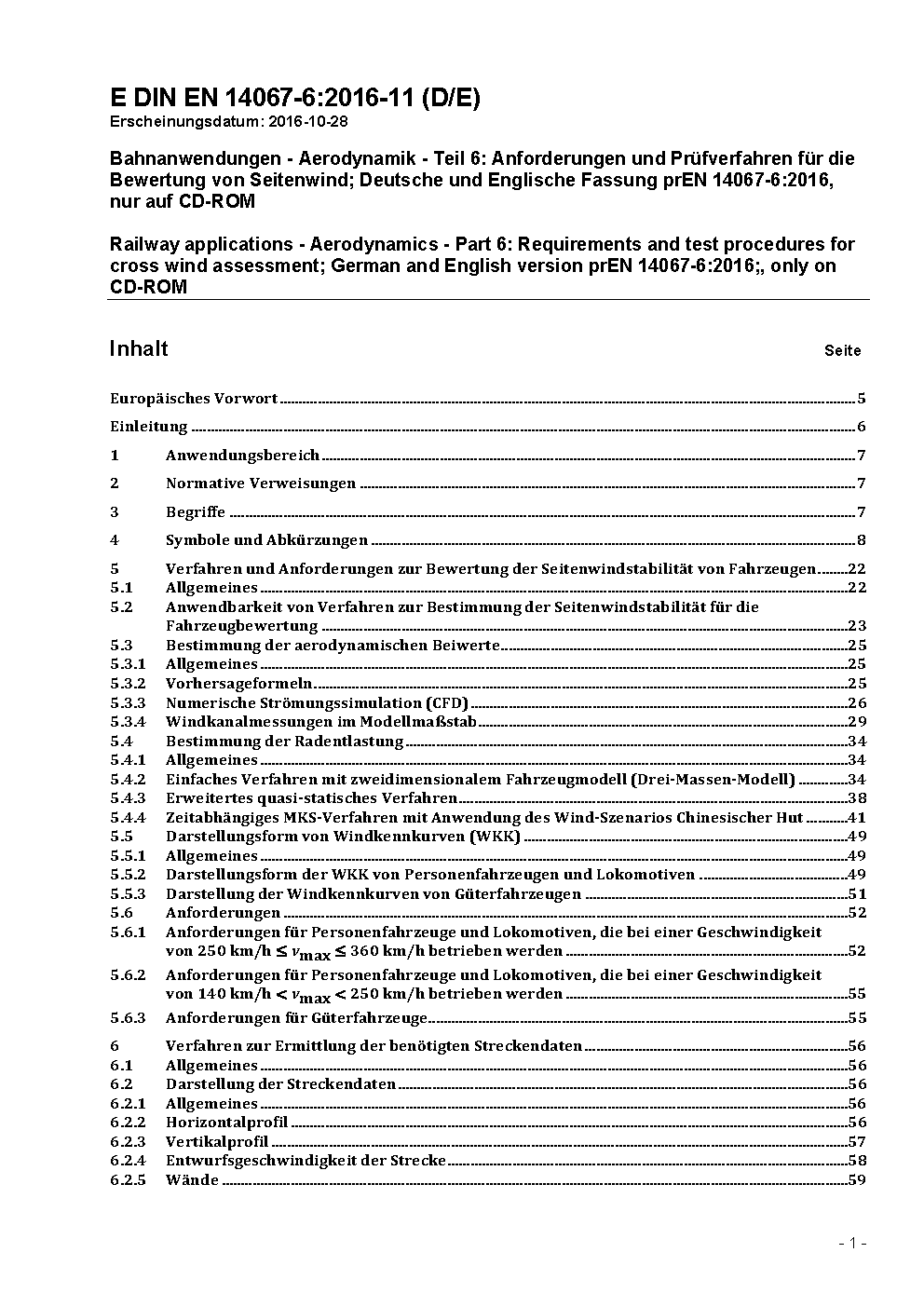 Railway applications - Aerodynamics - Part 6: Requirements and test procedures for cross wind assessment; German version EN 14067-6:2010