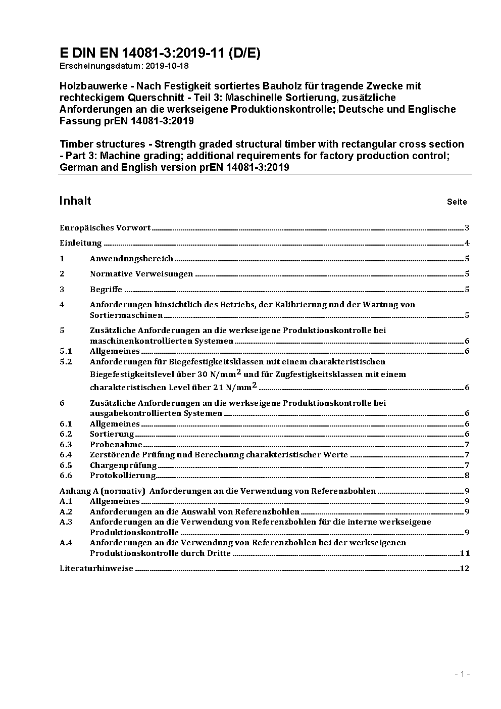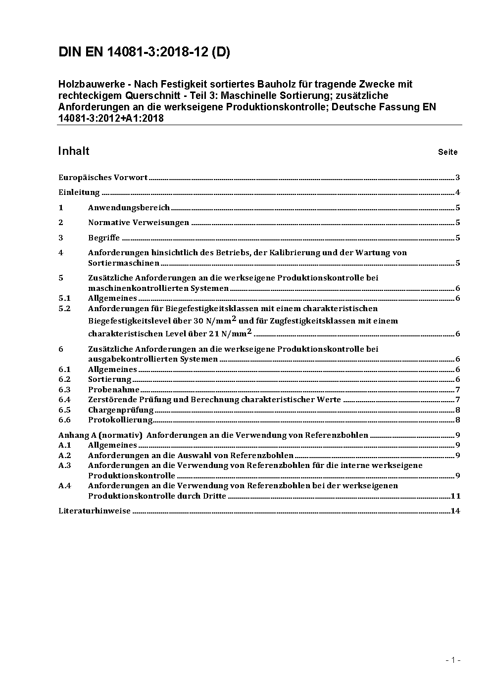 Holzbauwerke - Nach Festigkeit sortiertes Bauholz für tragende Zwecke mit rechteckigem Querschnitt - Teil 3: Maschinelle Sortierung; zusätzliche Anforderungen an die werkseigene Produktionskontrolle; Deutsche Fassung EN 14081-3:2012+A1:2018
