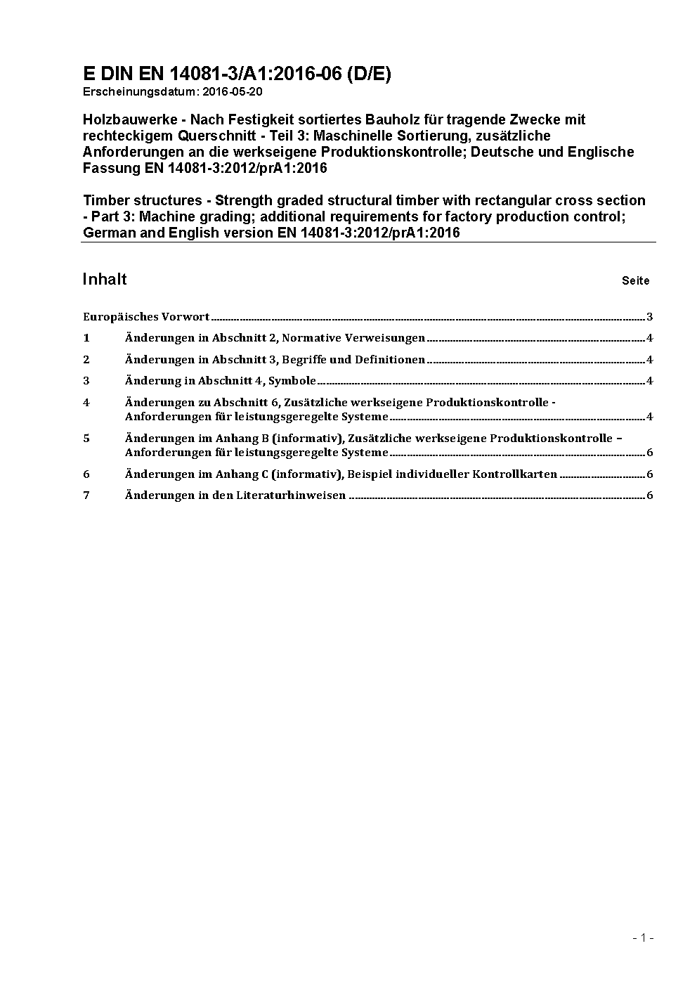 Timber structures - Strength graded structural timber with rectangular cross section - Part 3: Machine grading; additional requirements for factory production control; German version EN 14081-3:2012+A1:2018