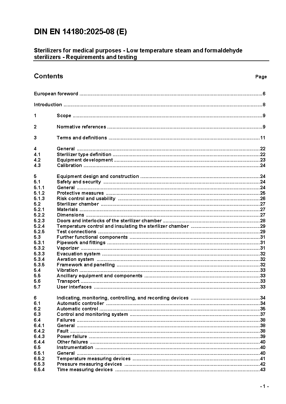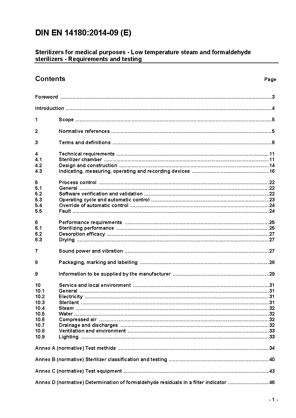 Sterilisatoren für medizinische Zwecke - Niedertemperatur-Dampf-Formaldehyd-Sterilisatoren - Anforderungen und Prüfung; Deutsche Fassung EN 14180:2003