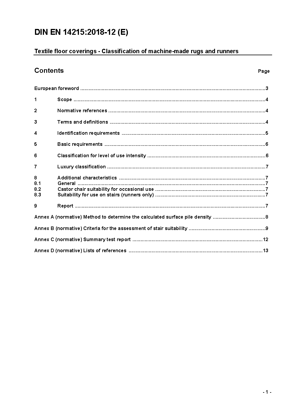 Textile floor coverings - Classification of machine-made rugs and runners; German and English version prEN 14215:2017