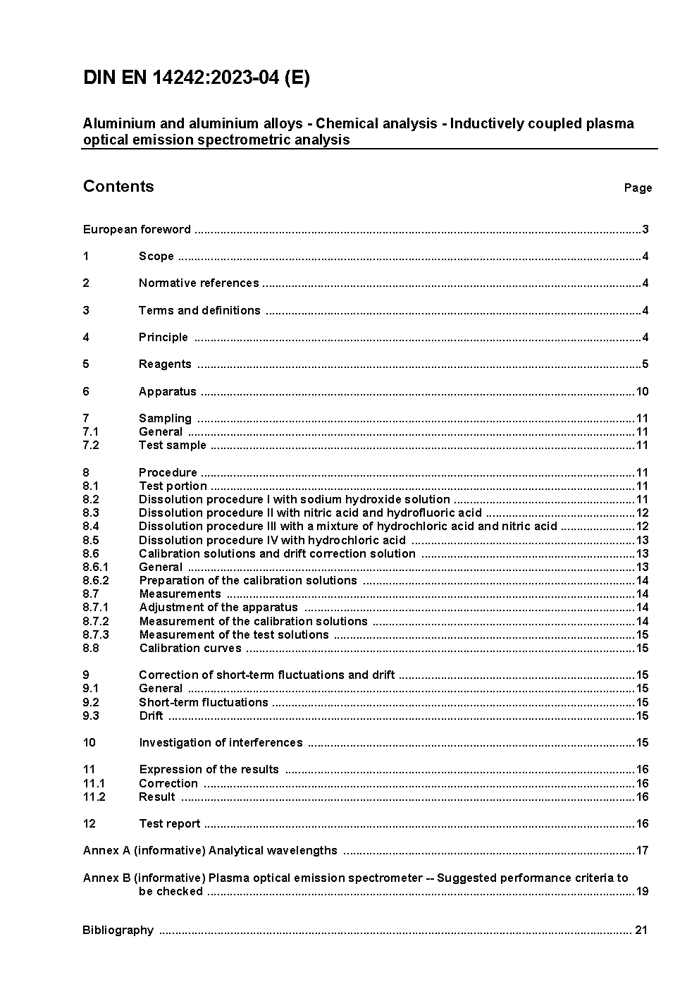 Aluminium and aluminium alloys - Chemical analysis - Inductively coupled plasma optical emission spectral analysis; German version EN 14242:2004