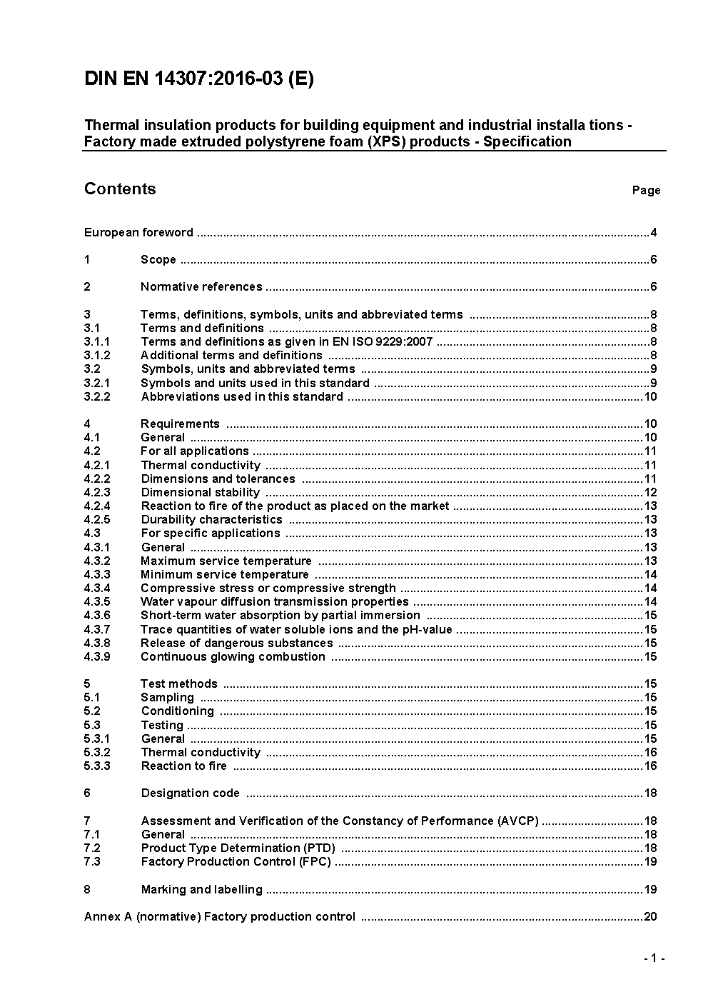 Thermal insulation products for building equipment and industrial installations - Factory made extruded polystyrene foam (XPS) products - Specification; German version EN 14307:2009