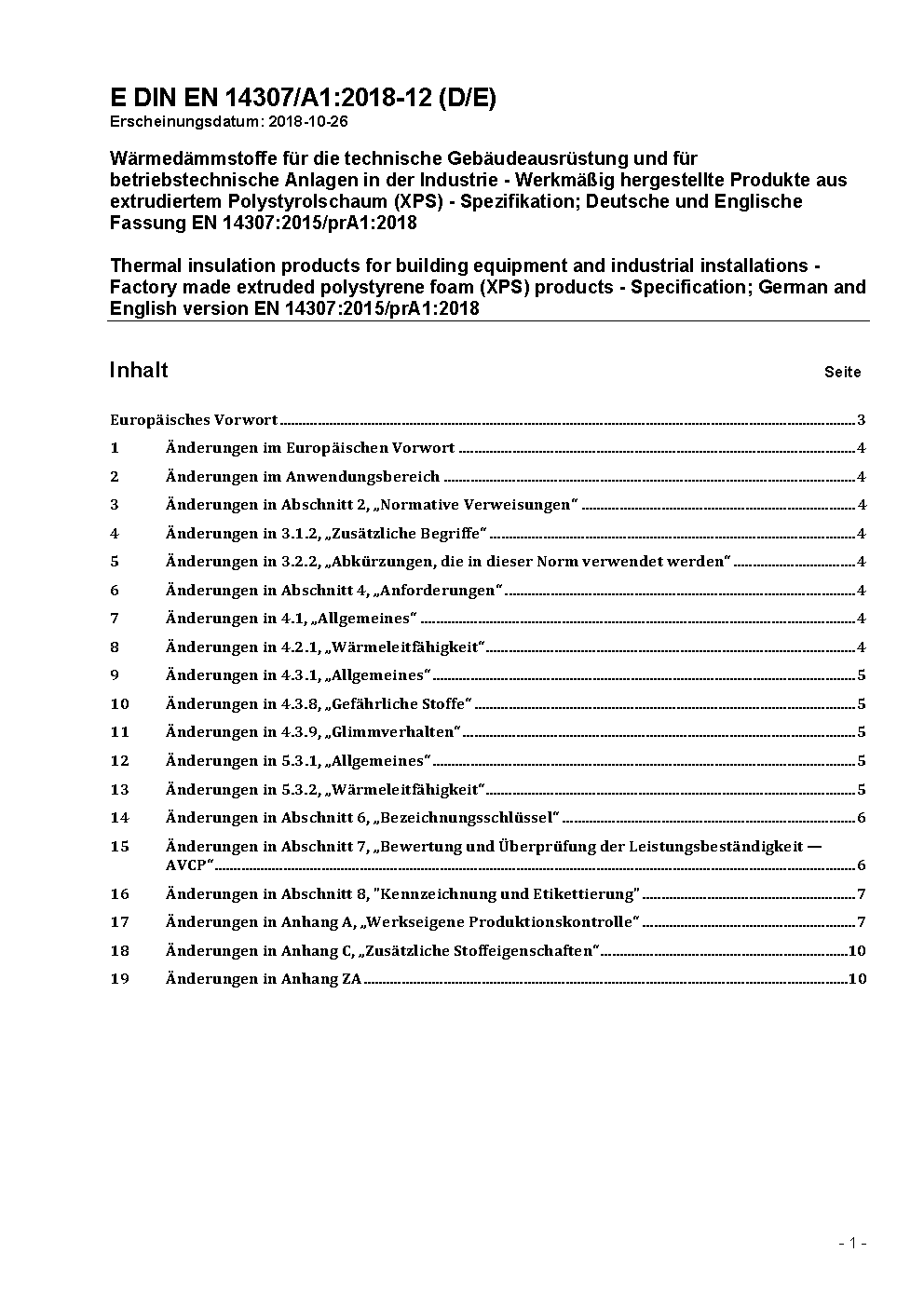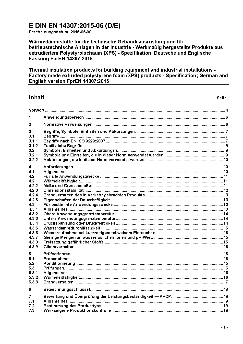 Wärmedämmstoffe für die technische Gebäudeausrüstung und für betriebstechnische Anlagen in der Industrie - Werkmäßig hergestellte Produkte aus extrudiertem Polystyrolschaum (XPS) - Spezifikation; Deutsche Fassung EN 14307:2009