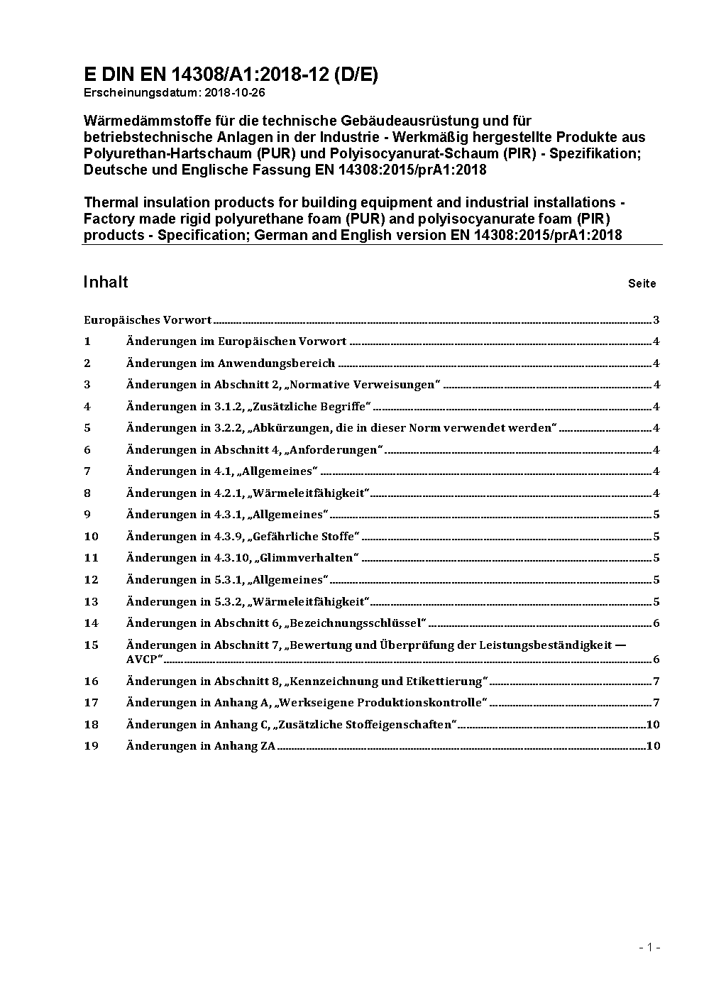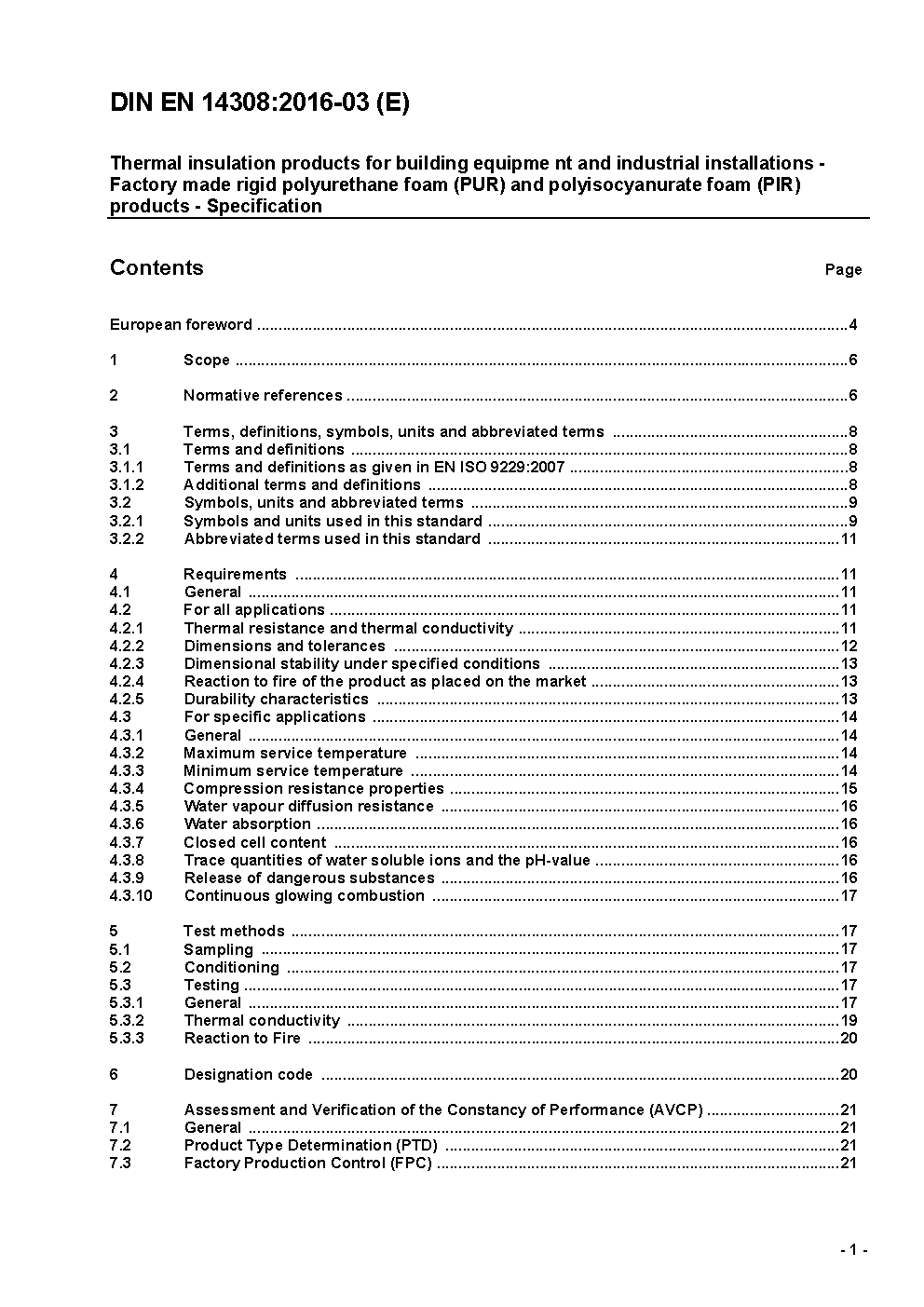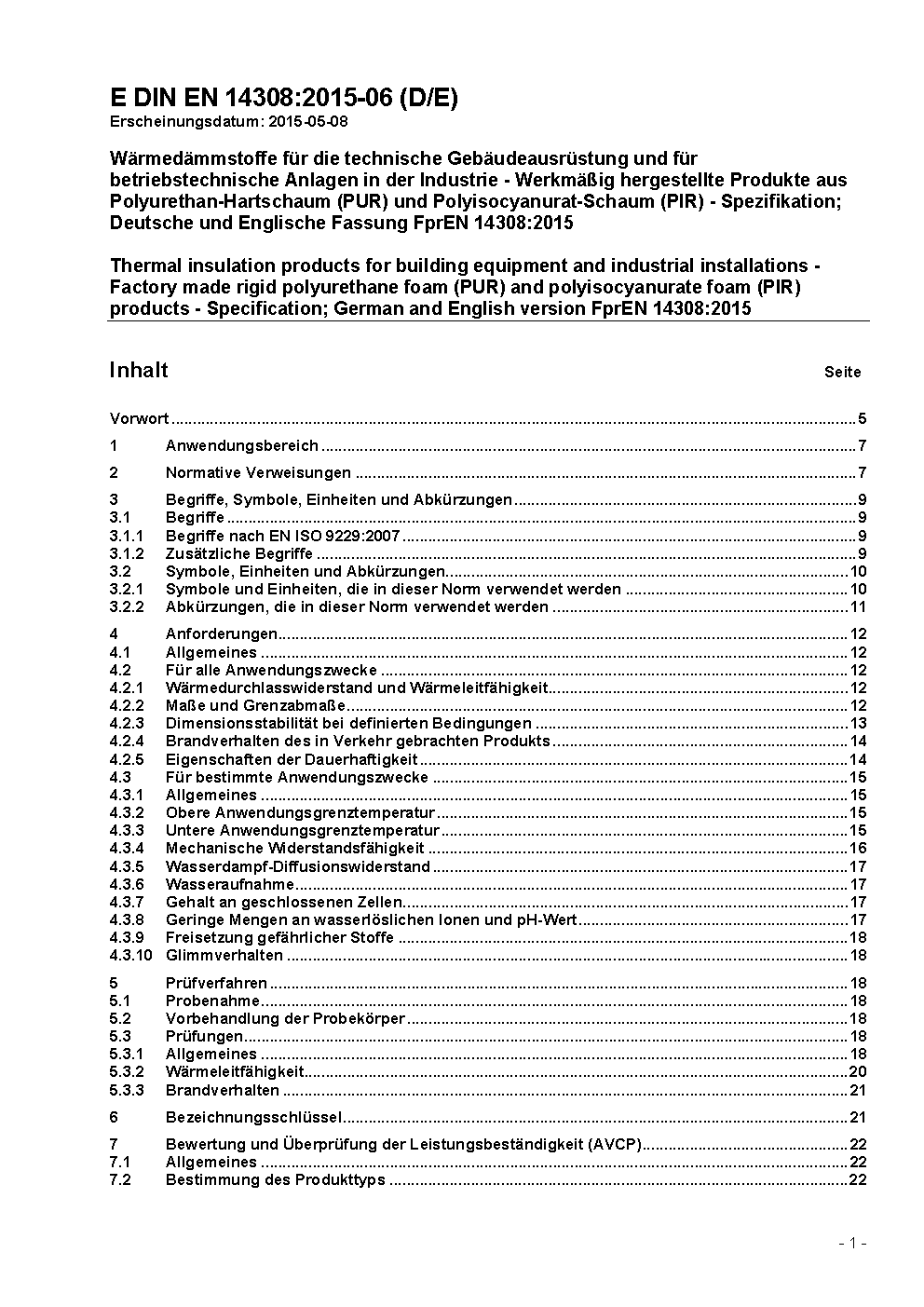 Wärmedämmstoffe für die technische Gebäudeausrüstung und für betriebstechnische Anlagen in der Industrie - Werkmäßig hergestellte Produkte aus Polyurethan-Hartschaum (PUR) und Polyisocyanurat-Schaum (PIR) - Spezifikation; Deutsche Fassung EN 14308:2009