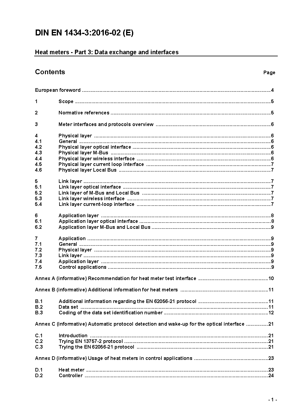 Heat meters - Part 3: Data exchange and interfaces; German and English version FprEN 1434-3:2015