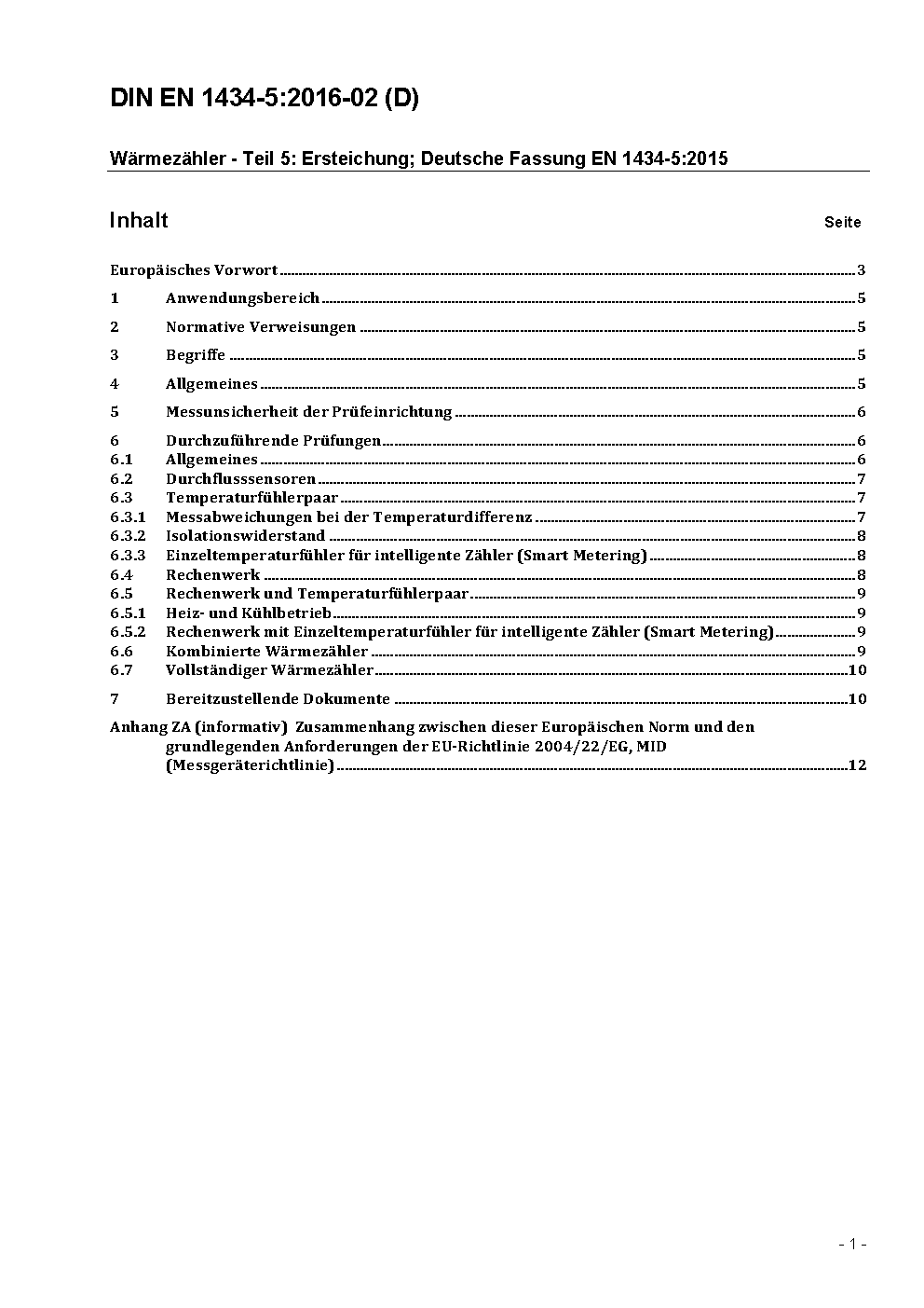 Wärmezähler - Teil 5: Ersteichung; Deutsche Fassung EN 1434-5:2015