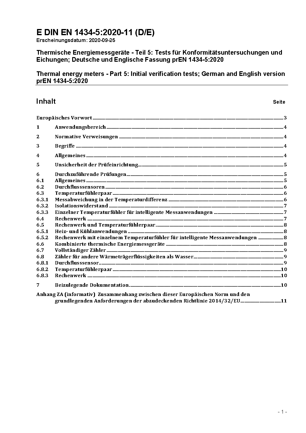 Heat meters - Part 5: Initial verification tests; German version EN 1434-5:2015