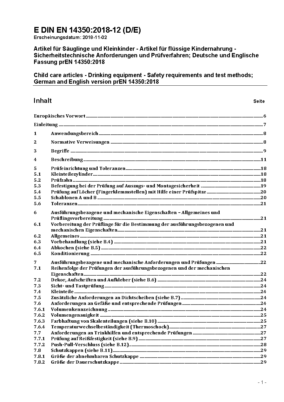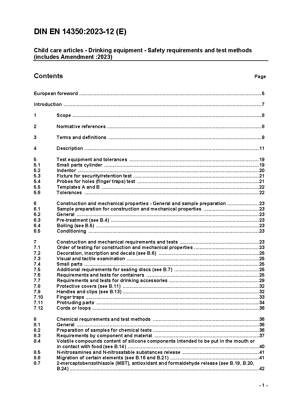Child care articles - Drinking equipment - Safety requirements and test methods; German version EN 14350:2020+A1:2023