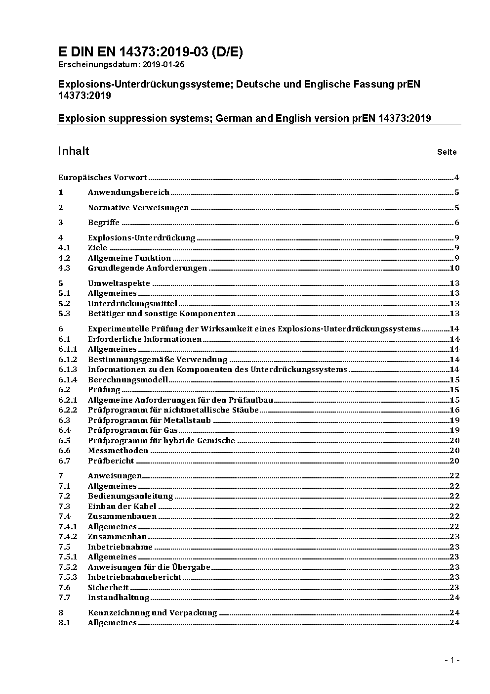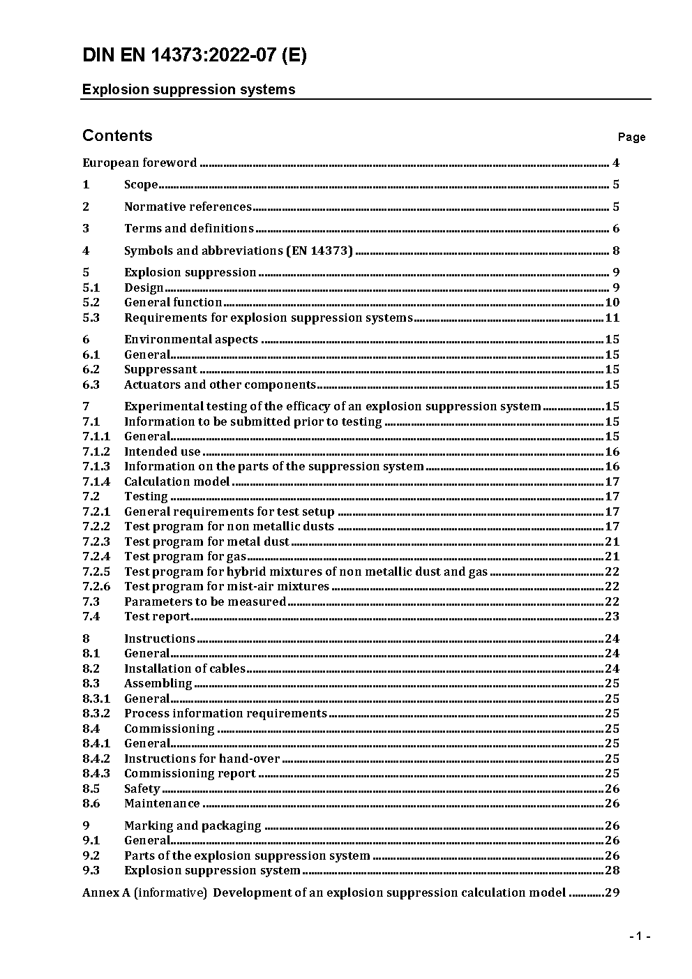 Explosion suppression systems; German and English version EN 14373:2021/prA1:2023