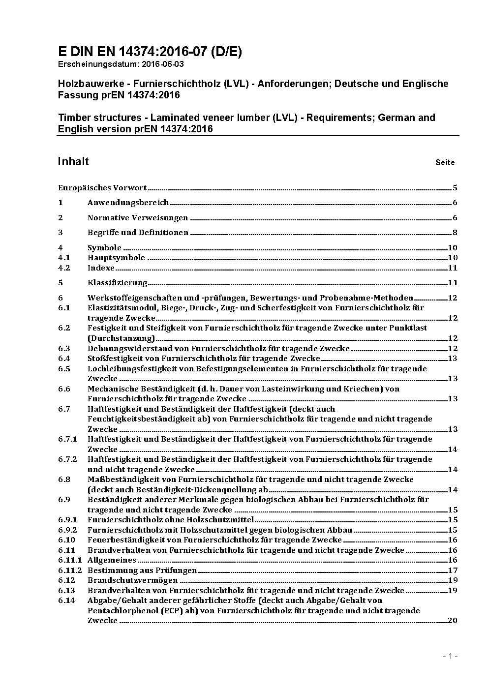 Holzbauwerke - Furnierschichtholz für tragende Zwecke - Anforderungen; Deutsche Fassung prEN 14374:2002