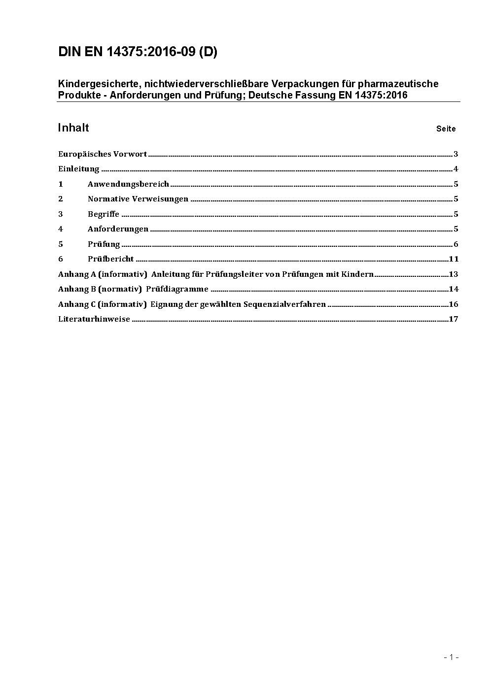 Kindergesicherte, nichtwiederverschließbare Verpackungen für medizinische Produkte - Anforderungen und Prüfungen; Deutsche Fassung prEN 14375:2002
