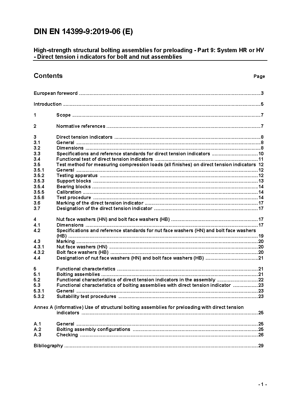 High-strength structural bolting assemblies for preloading - Part 9: System HR or HV - Direct tension indicators for bolt and nut assemblies; German version EN 14399-9:2009