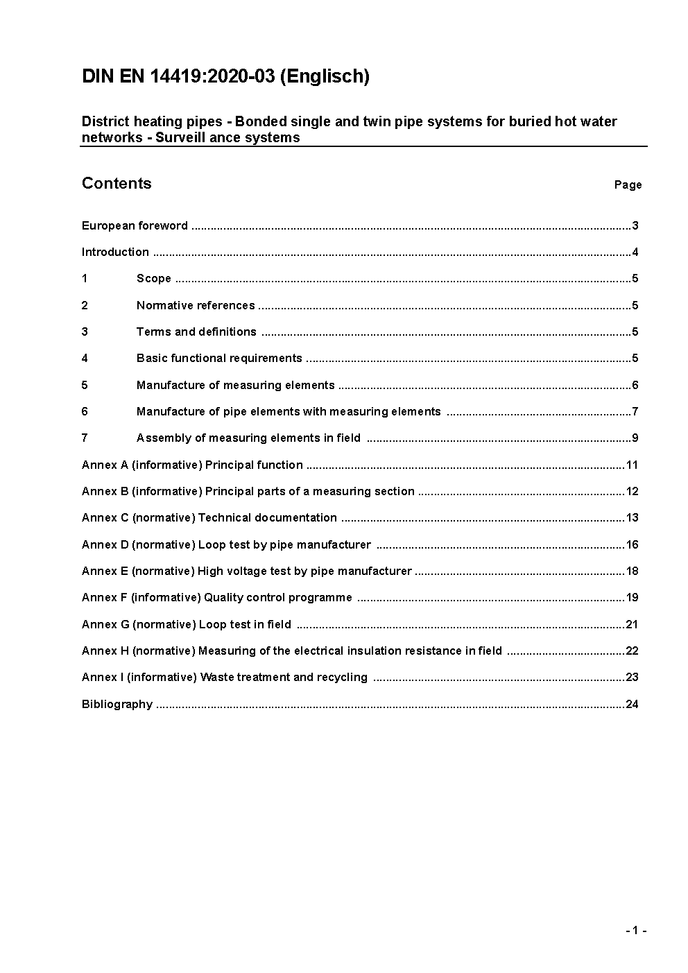 District heating pipes - Preinsulated bonded pipe systems for directly buried hot water networks - Surveillance systems; German and English version EN 14419:2009
