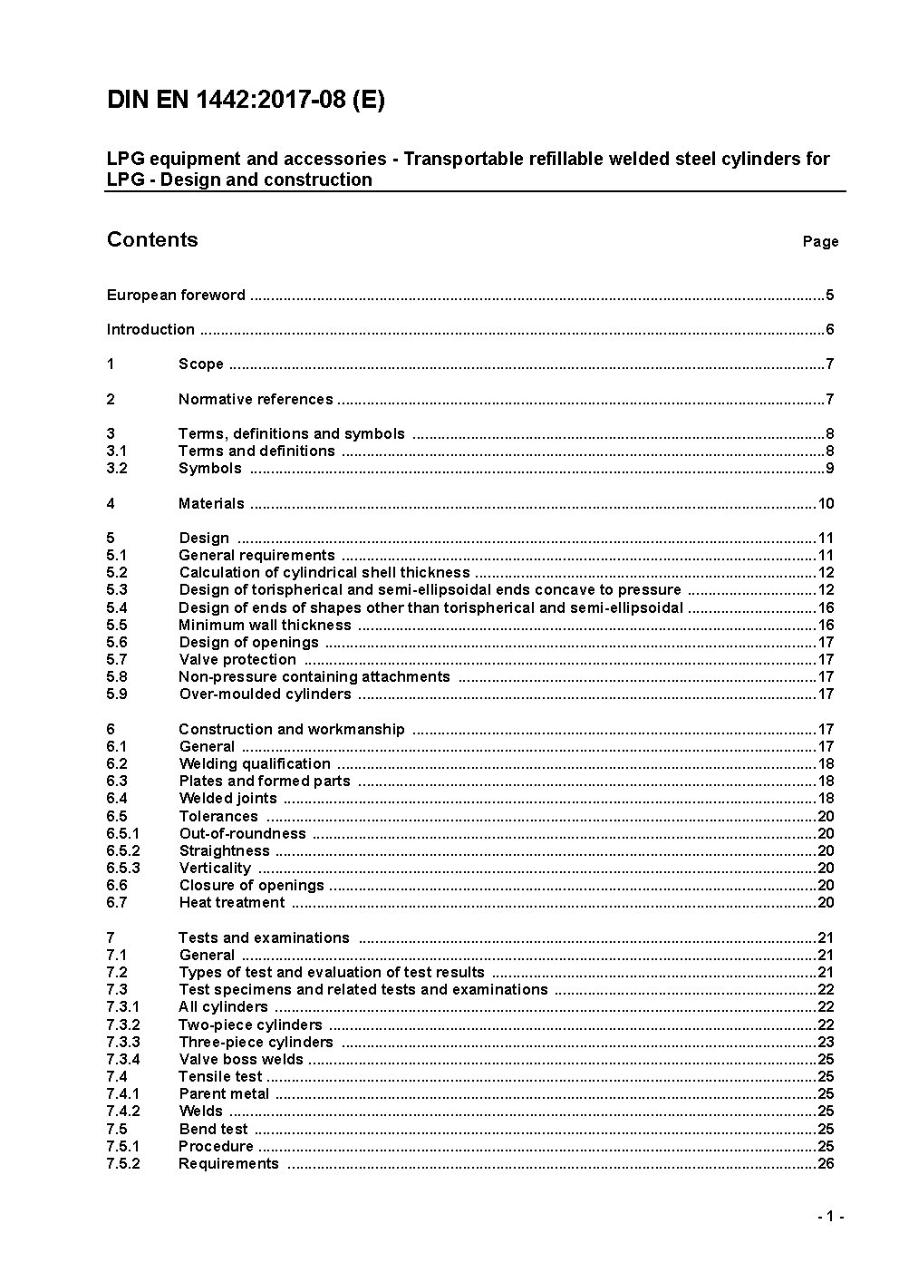 LPG equipment and accessories - Transportable refillable welded steel cylinders for LPG - Design and construction; German version EN 1442:2006+A1:2008