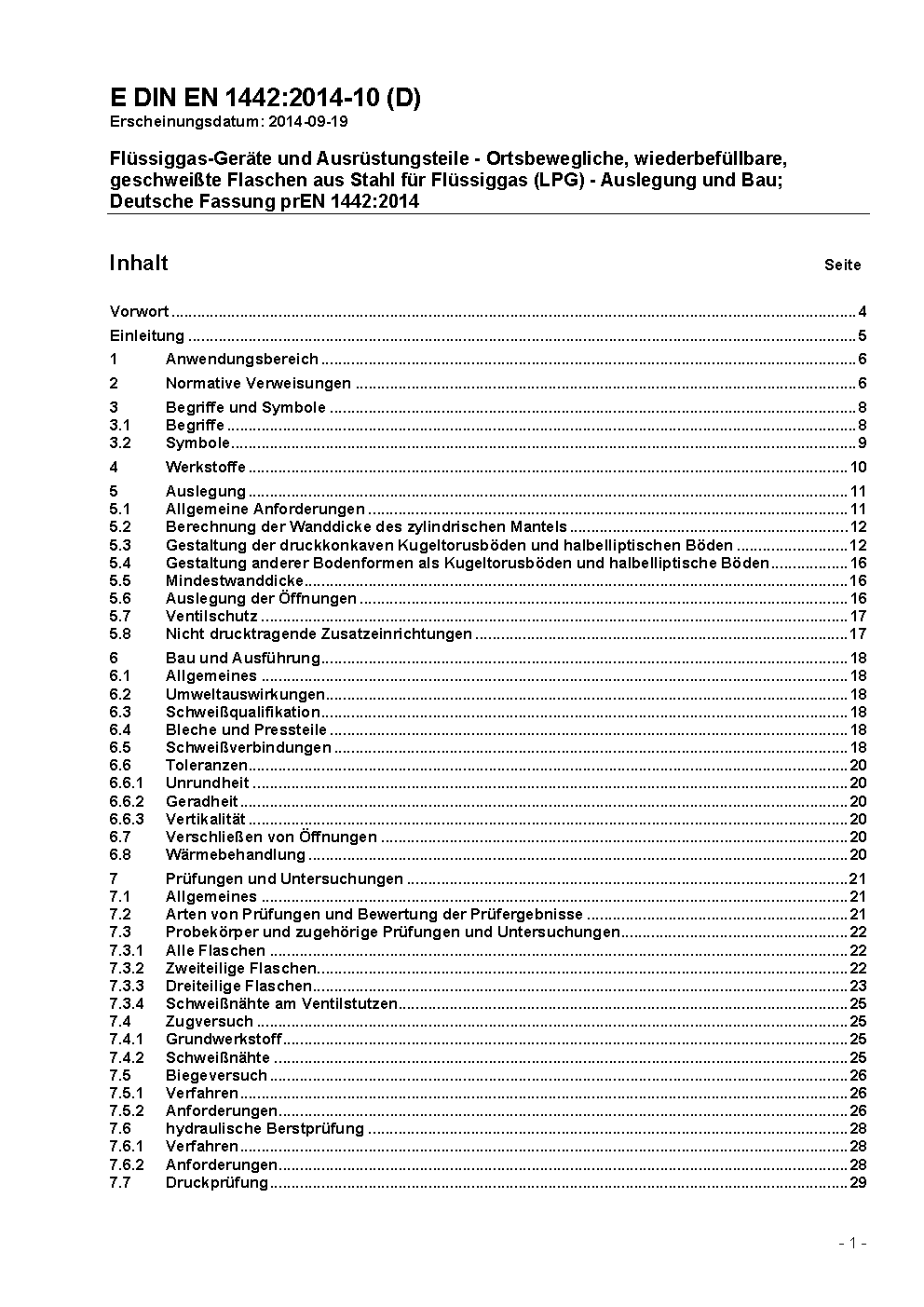 Flüssiggas-Geräte und Ausrüstungsteile - Ortsbewegliche, wiederbefüllbare, geschweißte Flaschen aus Stahl für Flüssiggas (LPG) - Gestaltung und Konstruktion; Deutsche Fassung EN 1442:2006+A1:2008