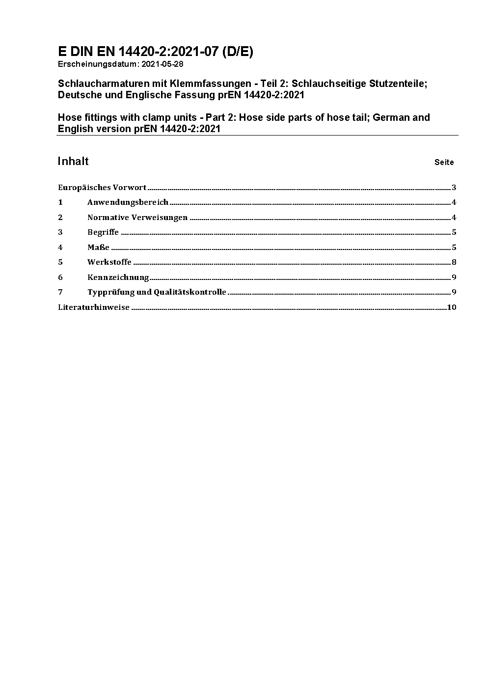 Schlaucharmaturen mit Klemmfassungen - Teil 2: Schlauchseitige Stutzenteile; Deutsche Fassung EN 14420-2:2013