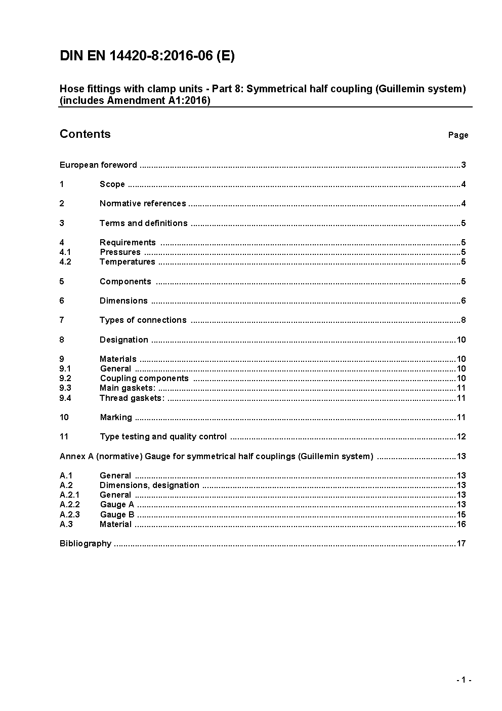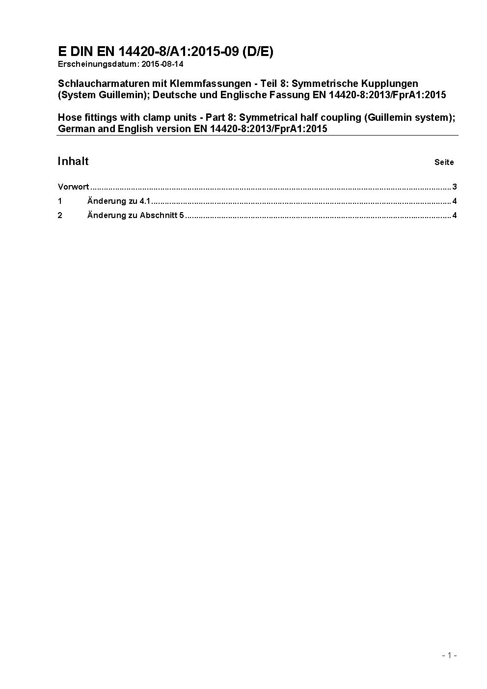 Schlaucharmaturen mit Klemmfassungen - Teil 8: Symmetrische Kupplungen (System Guillemin); Deutsche Fassung EN 14420-8:2013