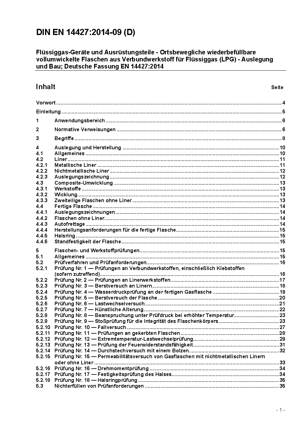 Ortsbewegliche wiederbefüllbare Flaschen aus Verbundwerkstoff für Flüssiggas (LPG) - Gestaltung und Konstruktion; Deutsche Fassung EN 14427:2004 + A1:2005