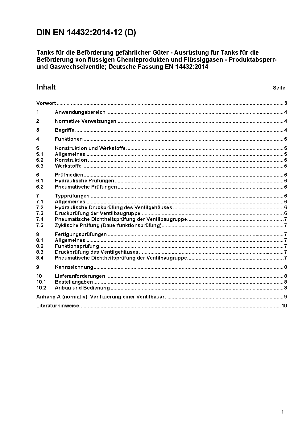 Tanks für die Beförderung gefährlicher Güter - Ausrüstung für Tanks für die Beförderung flüssiger Chemieprodukte - Produktabsperr- und Gaswechselventile; Deutsche Fassung EN 14432:2006