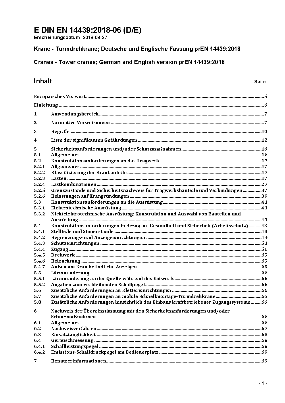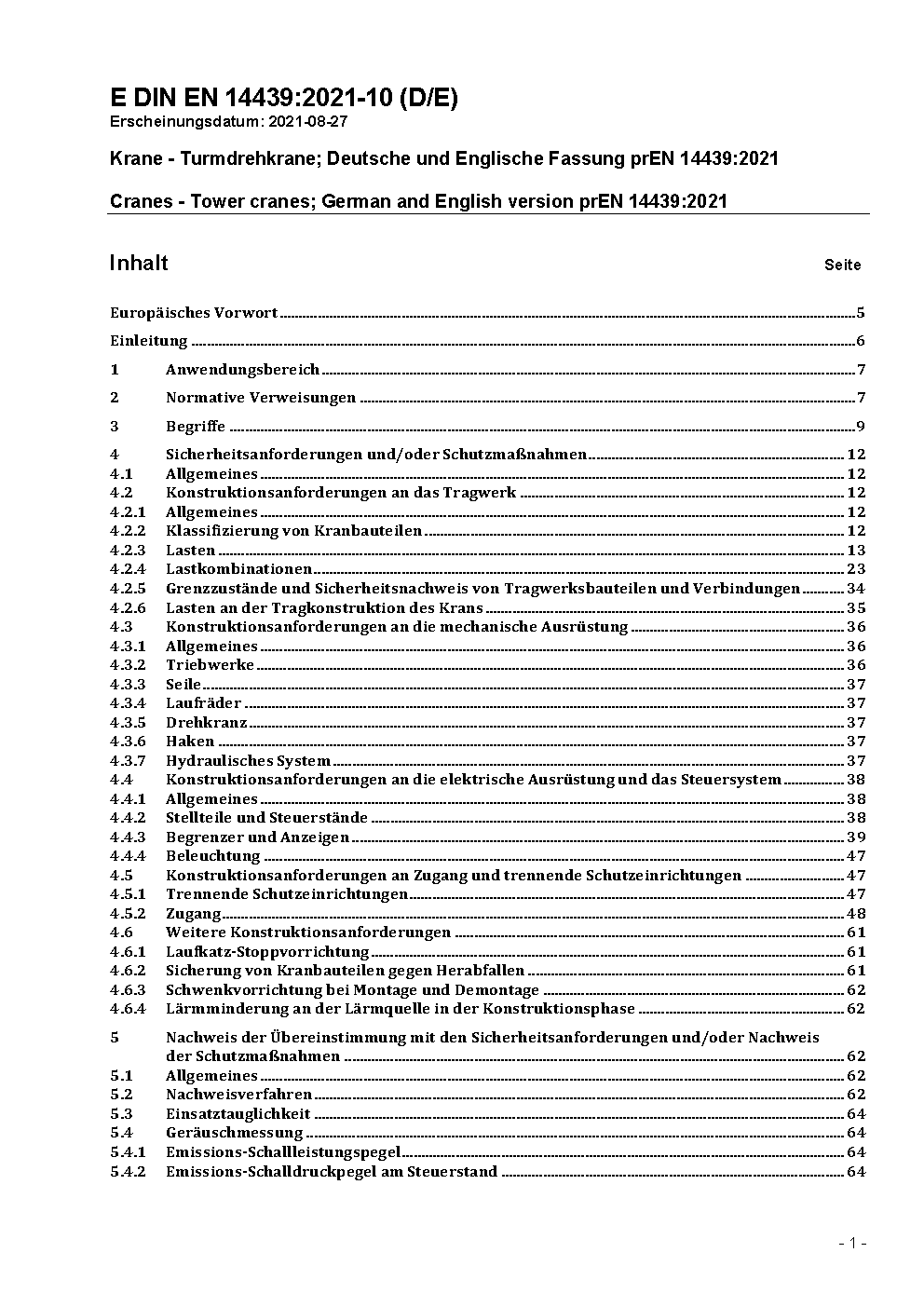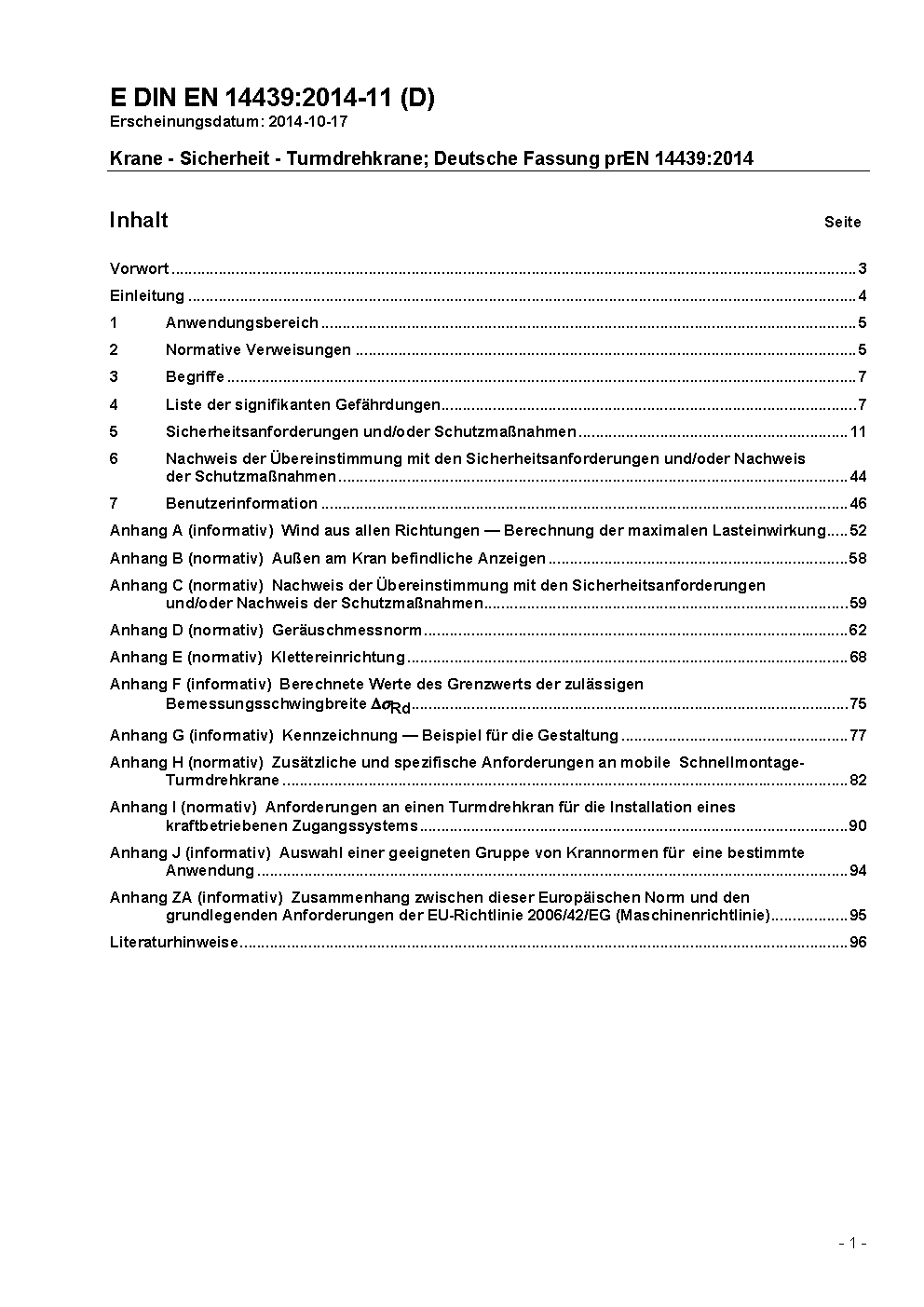 Krane - Turmdrehkrane; Deutsche Fassung prEN 14439:2002