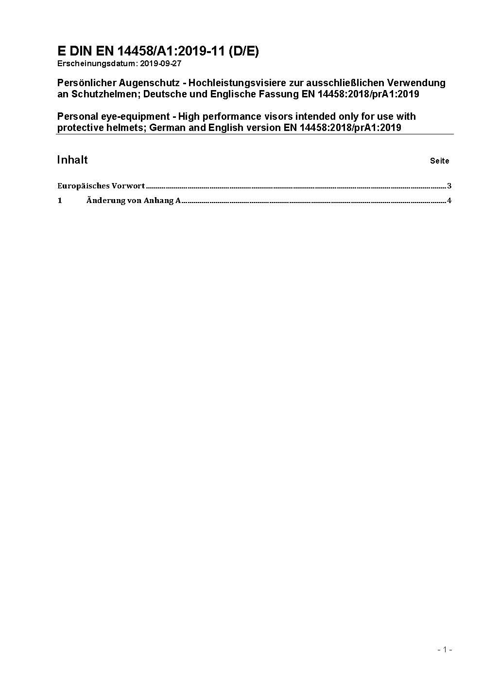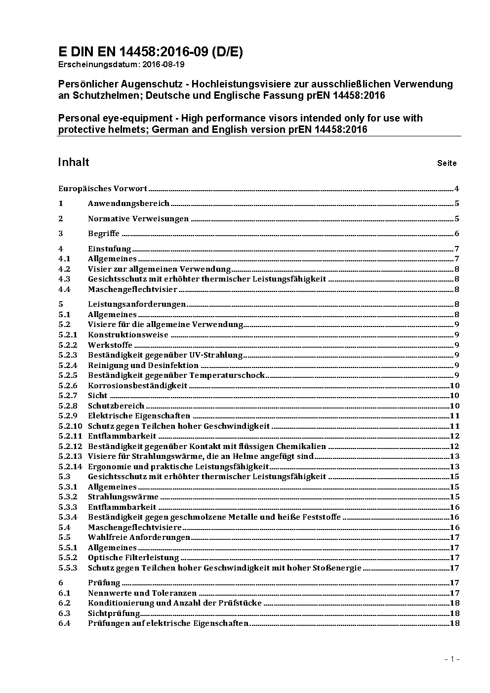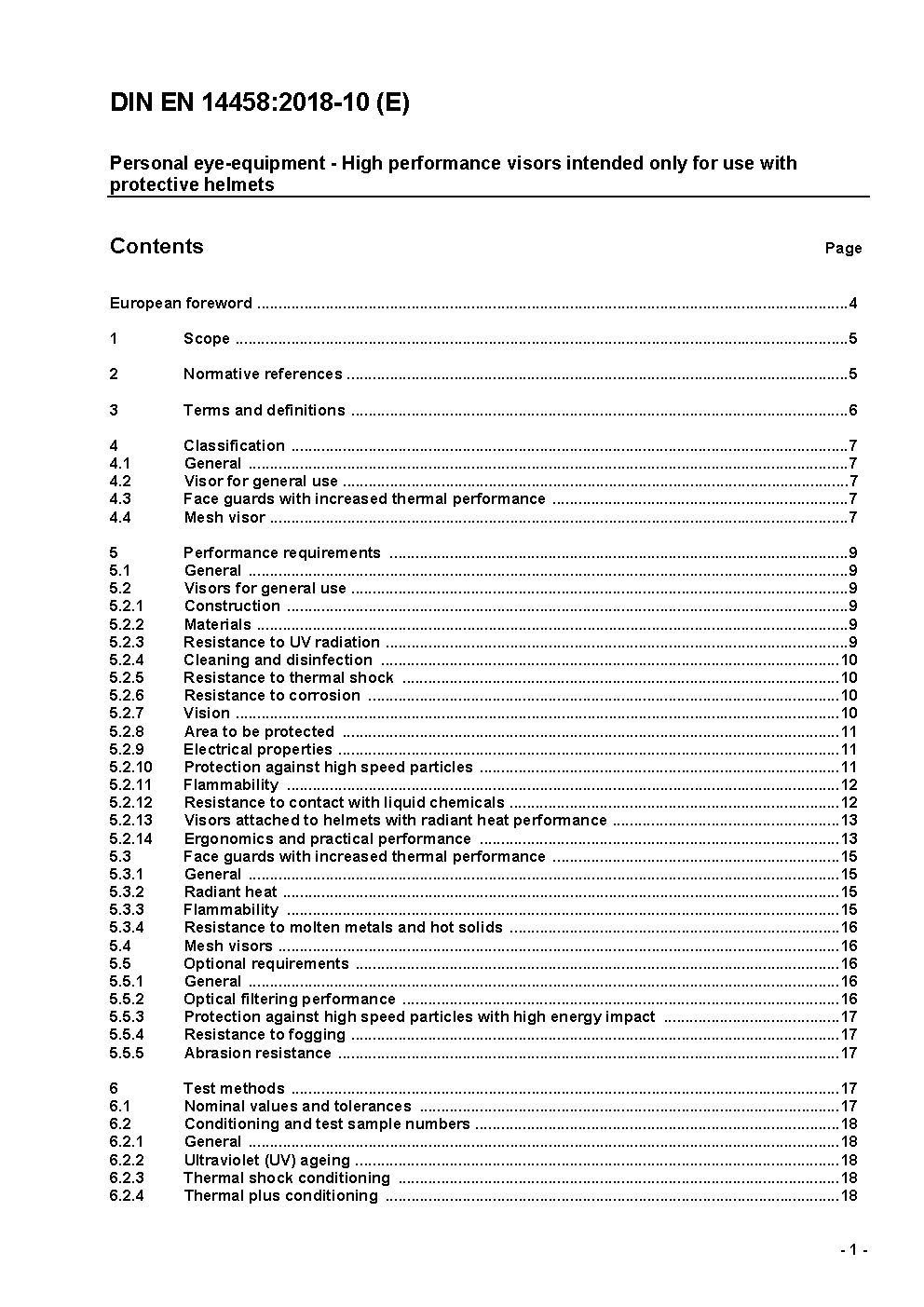 Personal eye-equipment - High performance visors intended only for use with protective helmets; German version EN 14458:2018