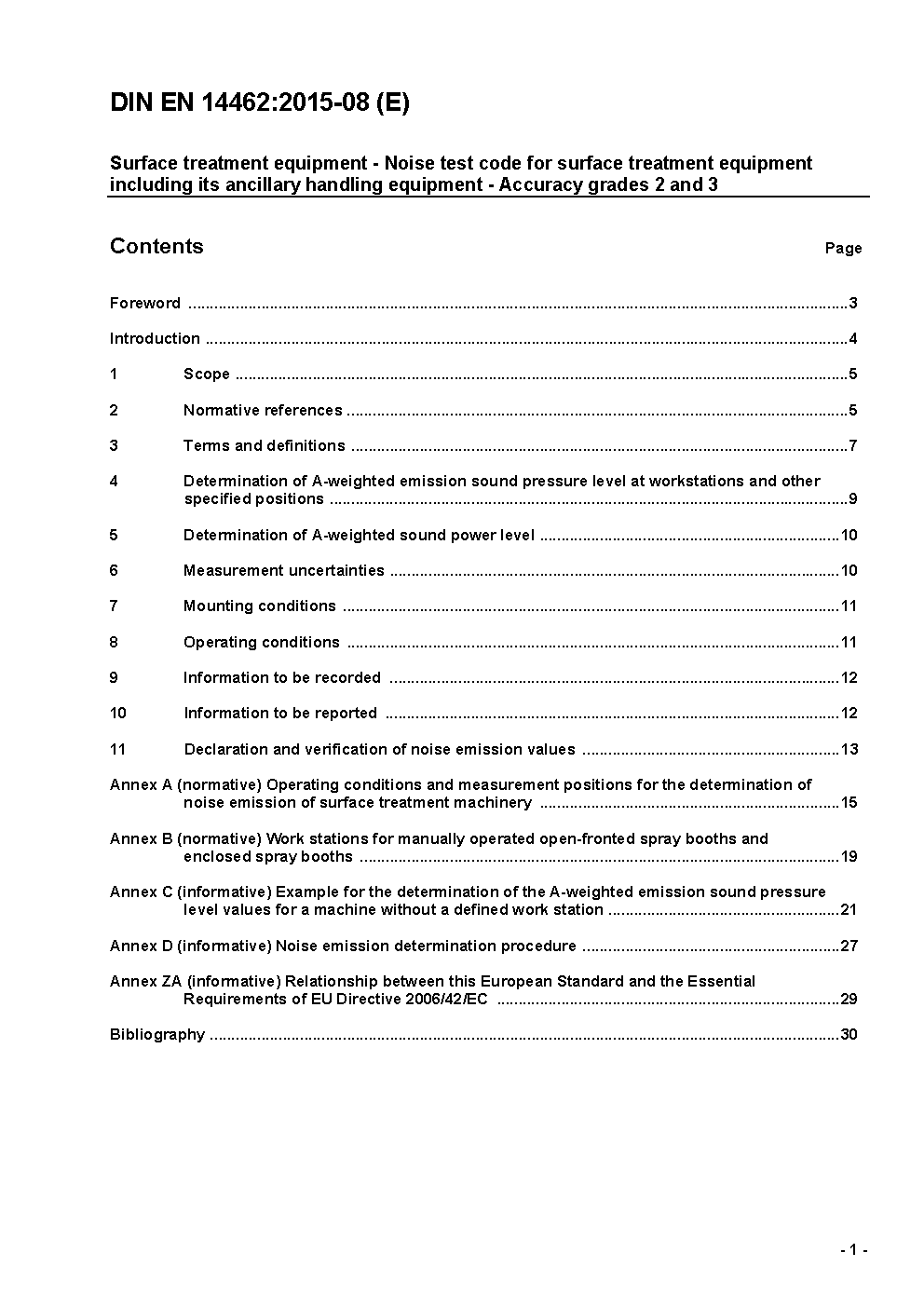 Oberflächenbehandlungsgeräte - Geräuschmessverfahren für Oberflächenbehandlungsgeräte, einschließlich ihrer Be- und Entladeeinrichtungen - Genauigkeitsklassen 2 und 3; Englische Fassung EN 14462:2005/FprA1:2008