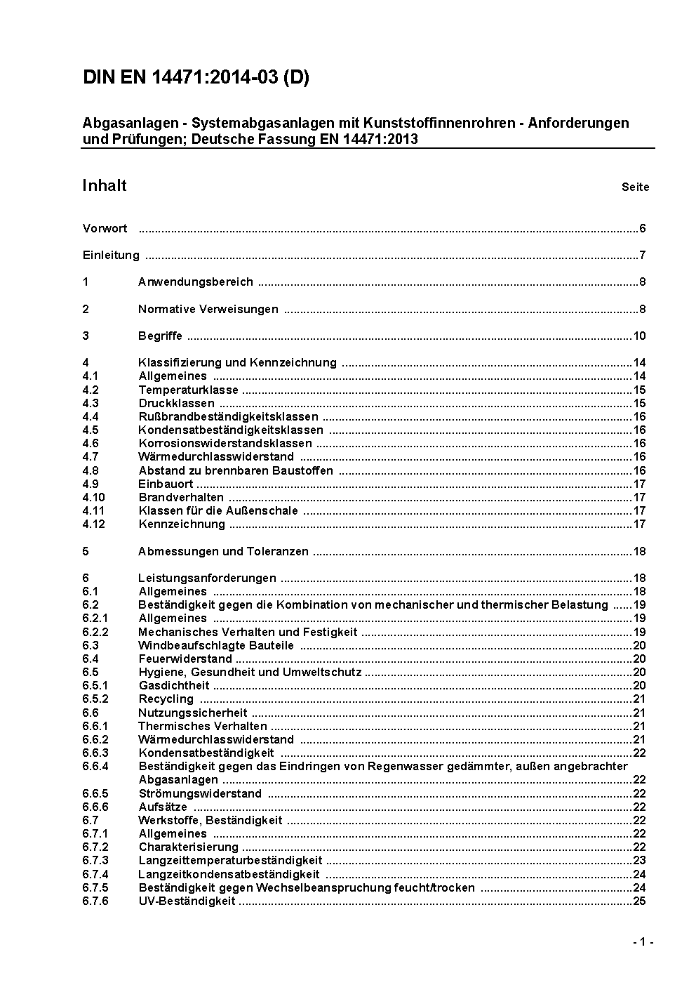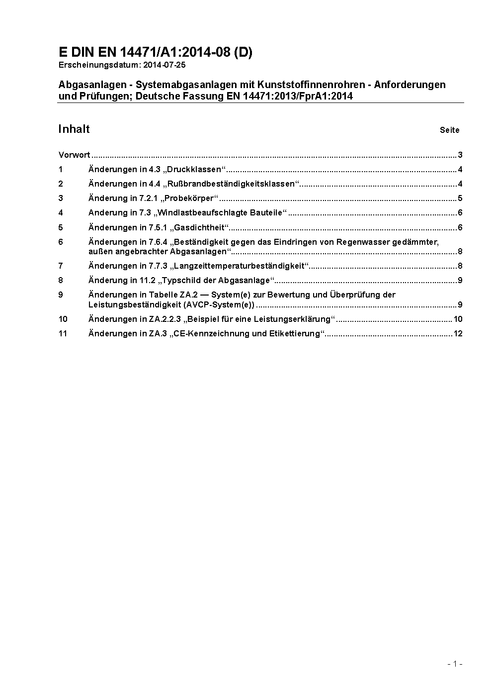 Abgasanlagen - Systemabgasanlagen mit Kunststoffinnenrohren - Anforderungen und Prüfungen; Deutsche Fassung EN 14471:2013+A1:2015