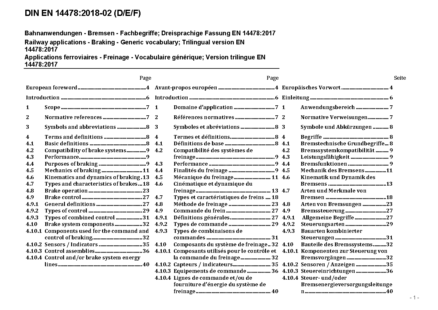 Bahnanwendungen - Bremsen - Fachbegriffe; Dreisprachige Fassung EN 14478:2017
