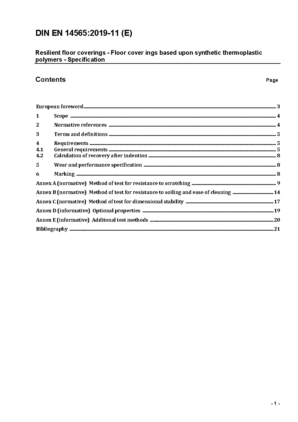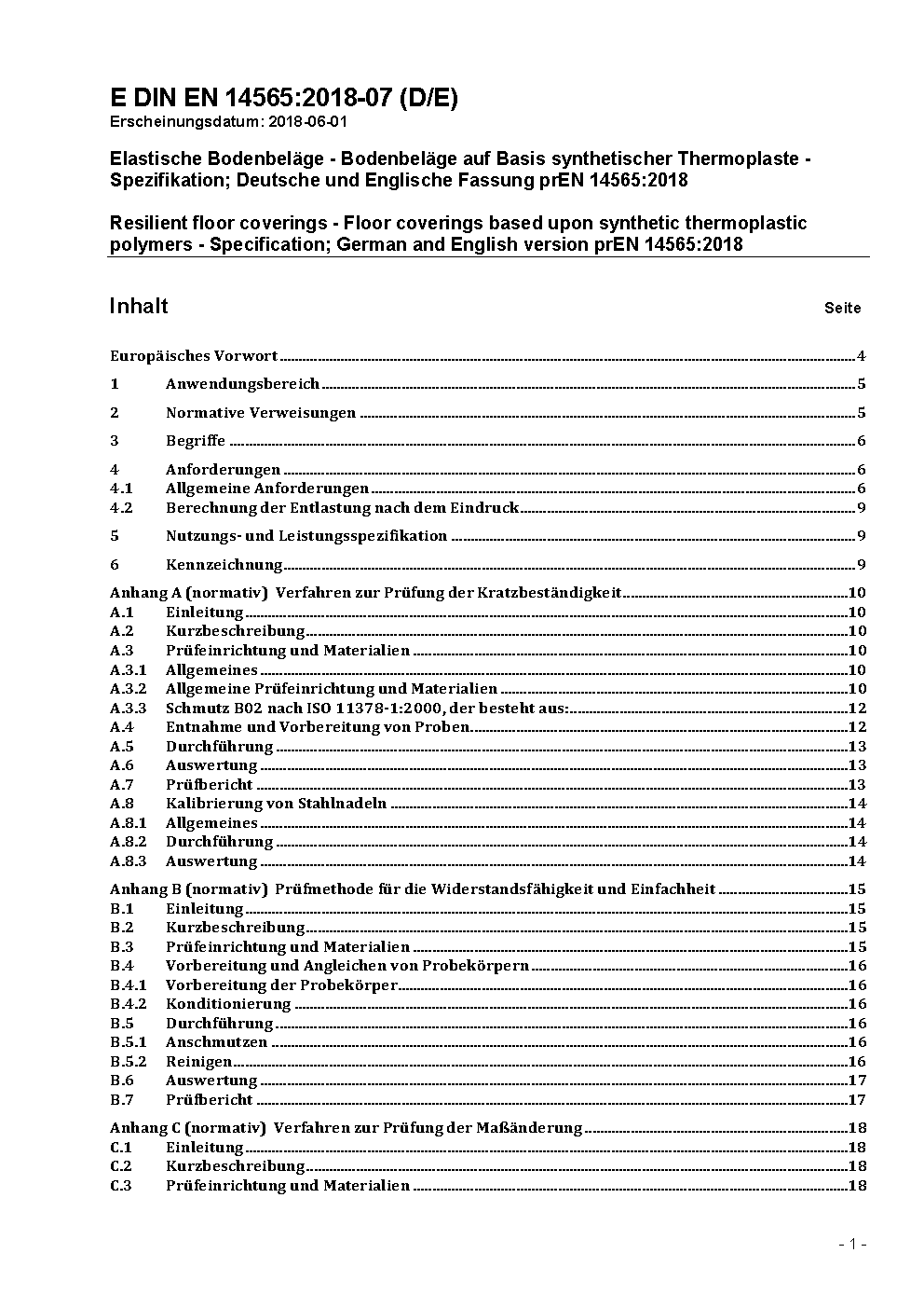 Elastische Bodenbeläge - Bodenbeläge auf Basis synthetischer Thermoplaste - Spezifikation; Deutsche Fassung EN 14565:2004
