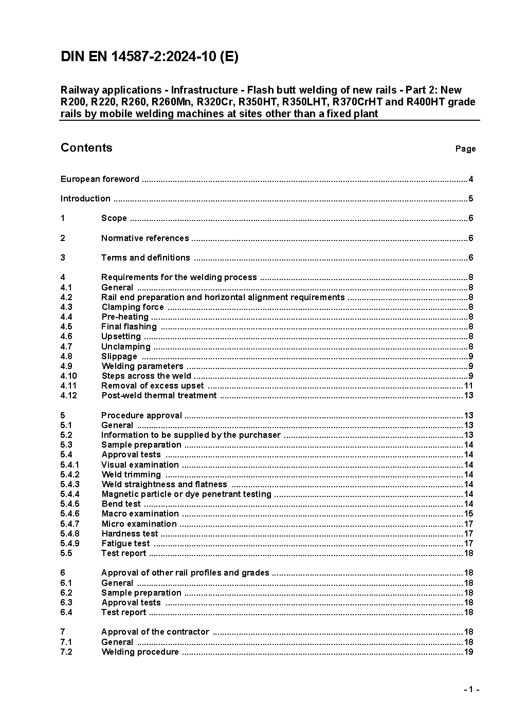 Railway applications - Track - Flash butt welding of rails - Part 2: New R220, R260, R260Mn and R350HT grade rails by mobile welding machines at sites other than a fixed plant; German version EN 14587-2:2009