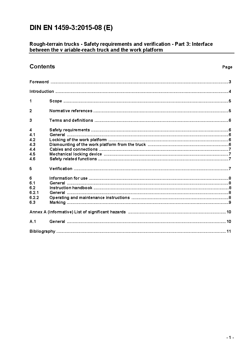 Rough-terrain trucks - Safety requirements and verification - Part 3: Additional requirements for variable reach trucks fitted with work platform; German version prEN 1459-3:2013