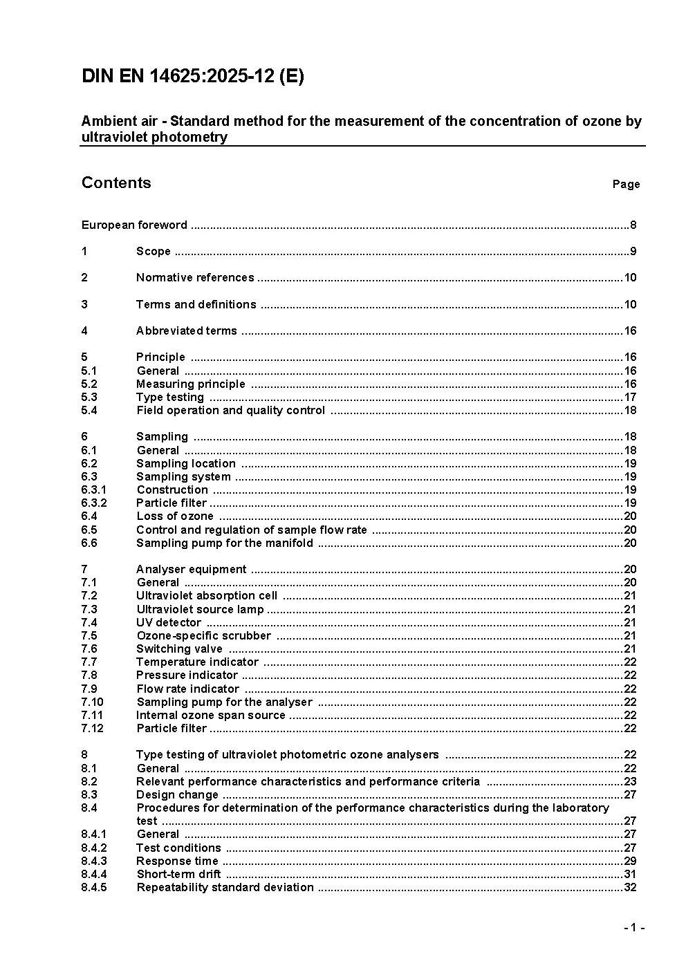 Ambient air - Standard method for the measurement of the concentration of ozone by ultraviolet photometry; German version EN 14625:2012
