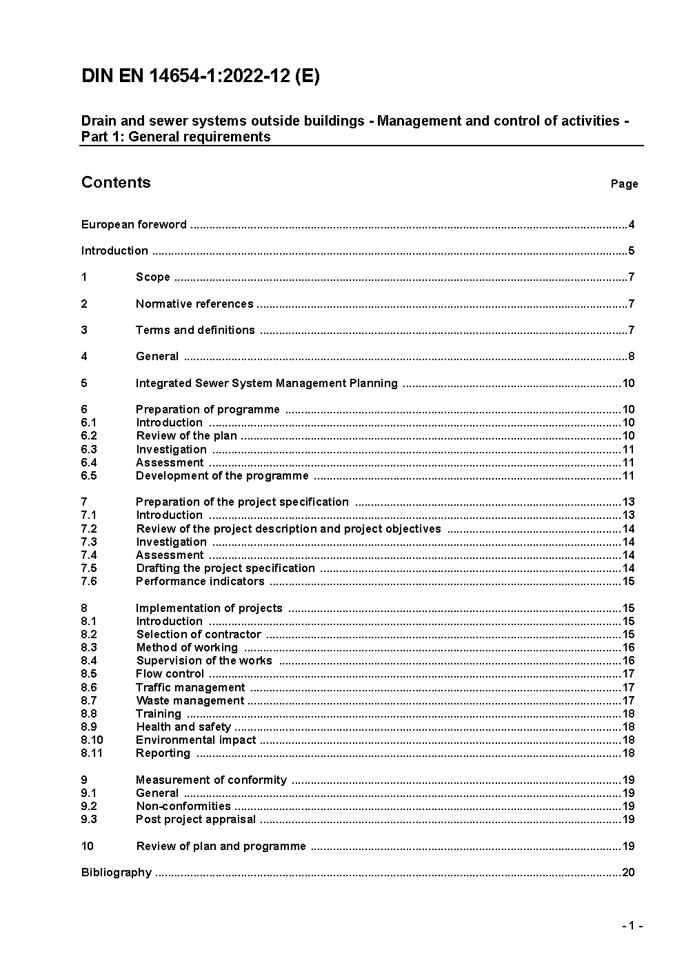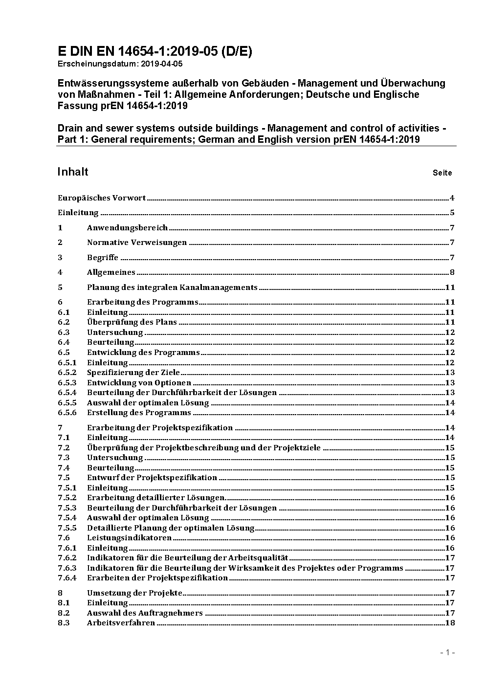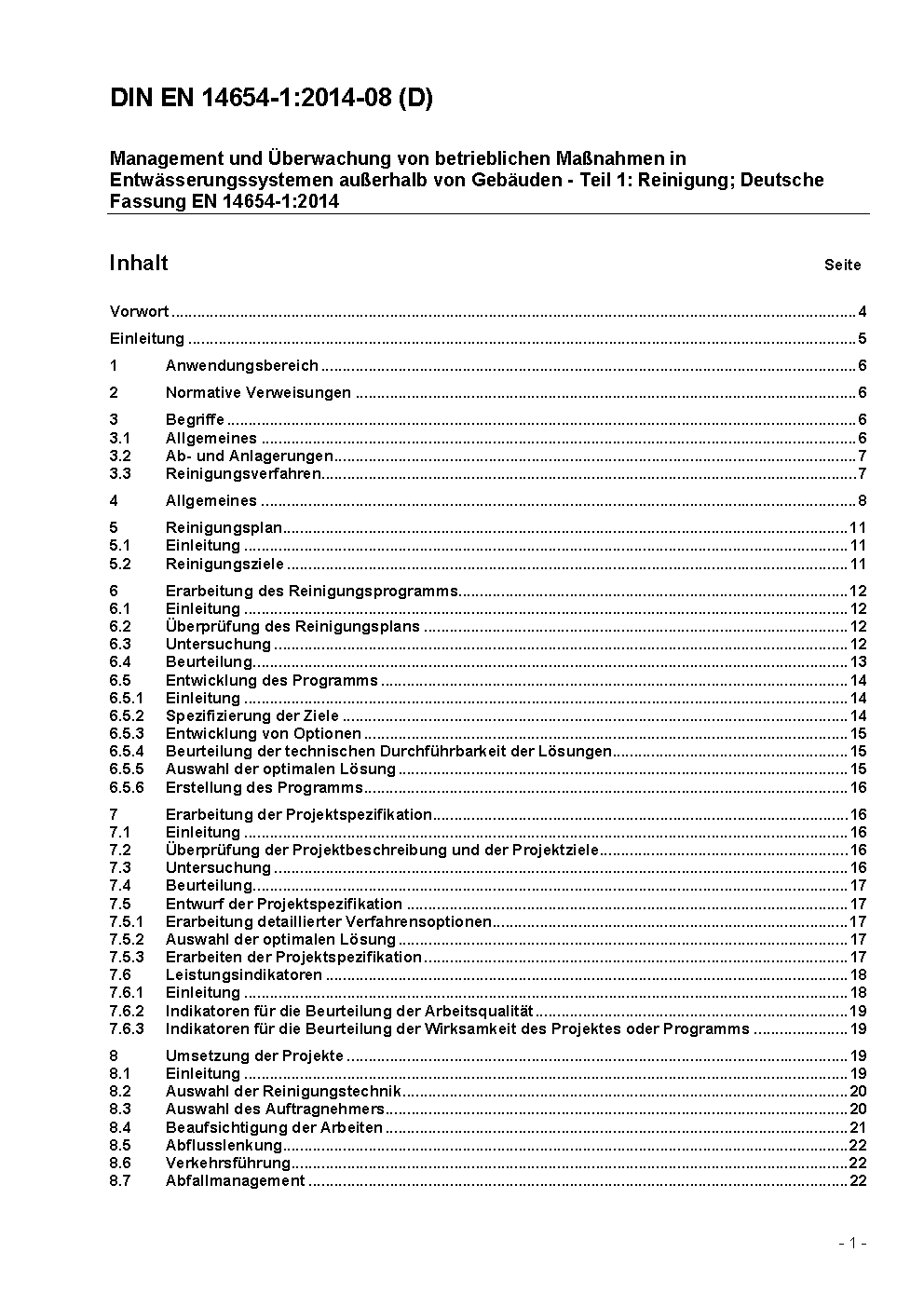 Management und Überwachung von Reinigungsmaßnahmen in Abwasserkanälen und -leitungen - Teil 1: Reinigung von Kanälen; Deutsche Fassung EN 14654-1:2005