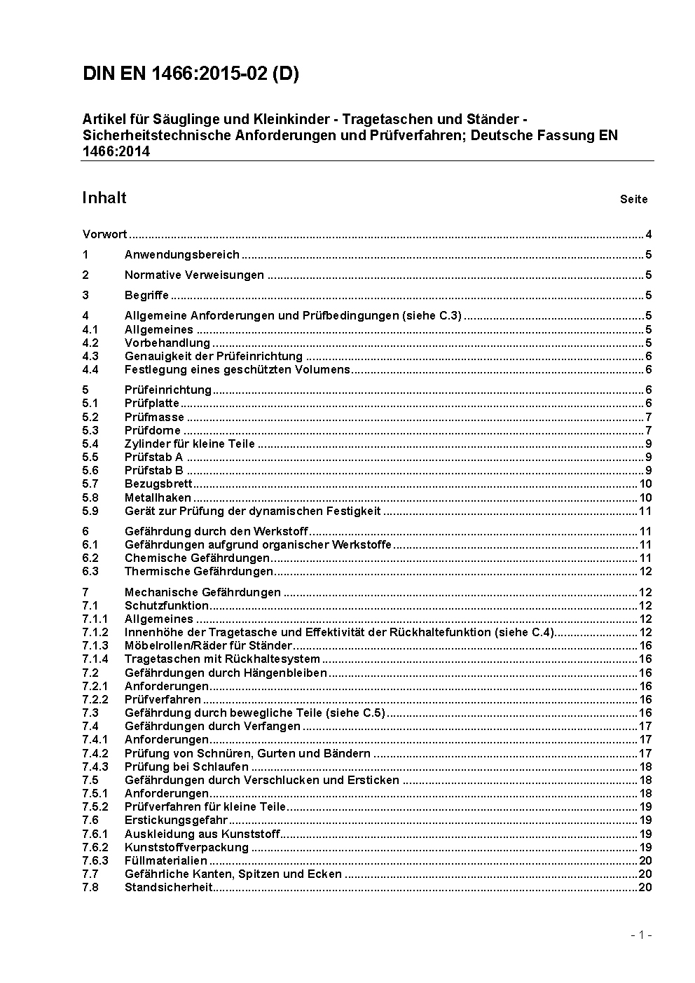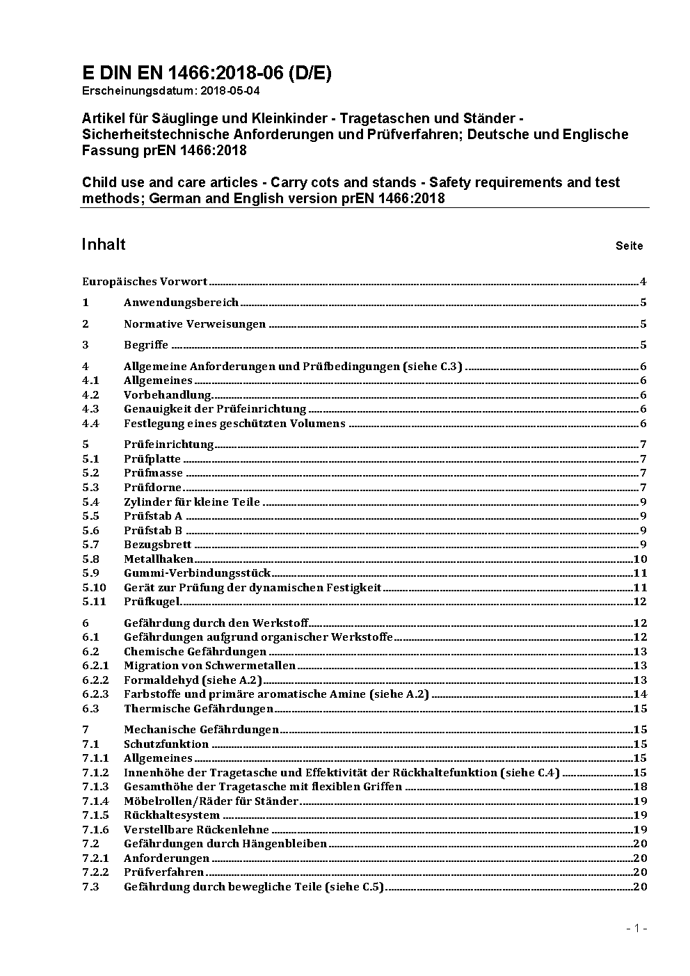 Artikel für Säuglinge und Kleinkinder - Tragetaschen und Ständer - Sicherheitstechnische Anforderungen und Prüfverfahren; Deutsche Fassung prEN 1466:2013