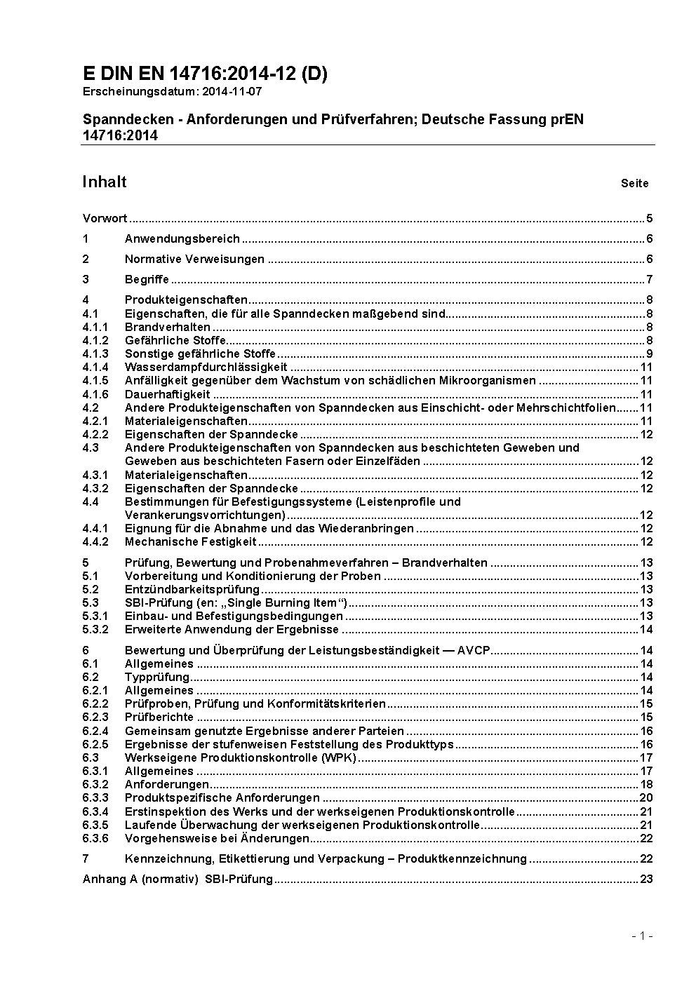 Spanndecken - Anforderungen und Prüfverfahren; Deutsche Fassung EN 14716:2004
