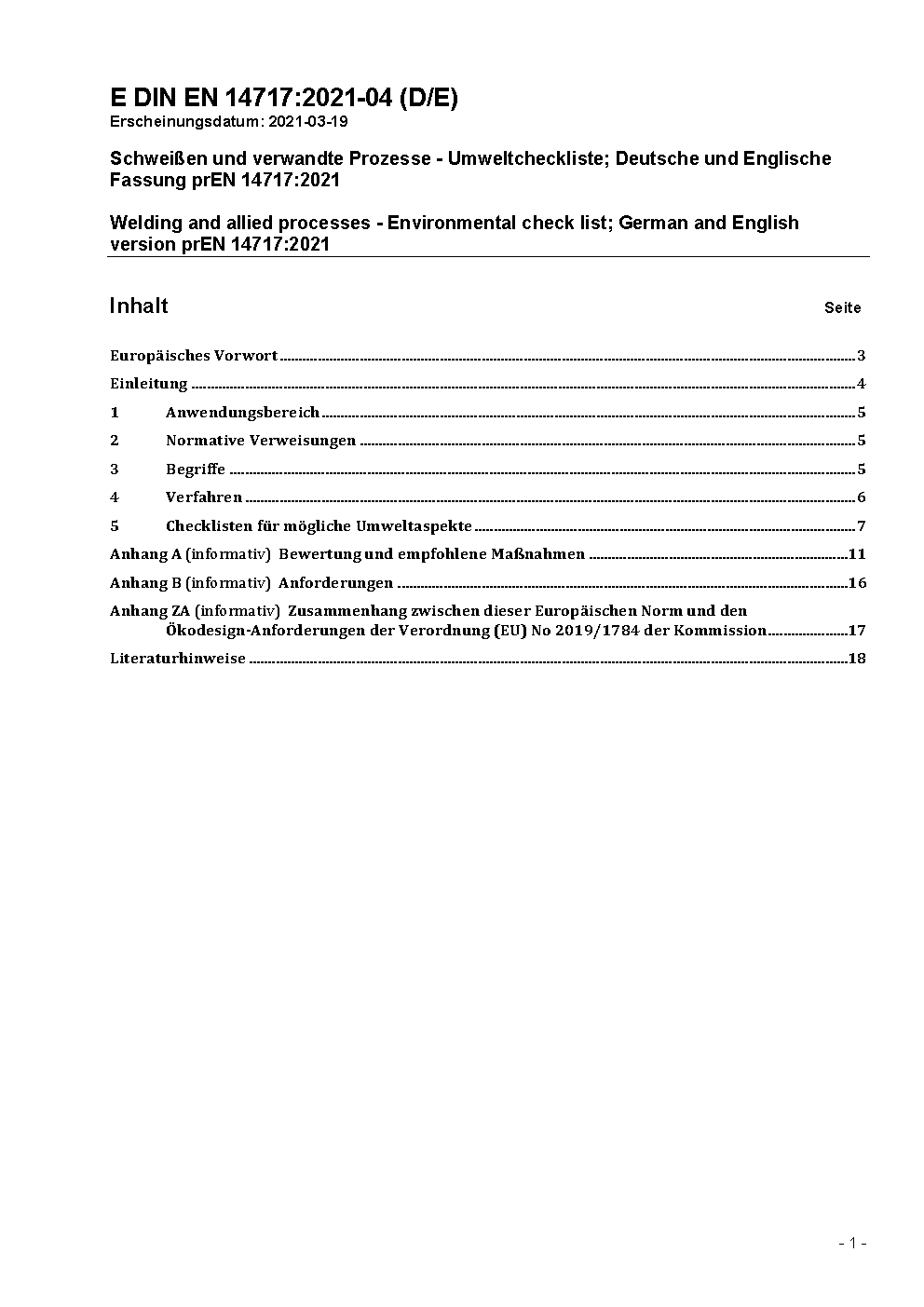 Schweißen und verwandte Prozesse - Umweltcheckliste; Deutsche Fassung EN 14717:2005